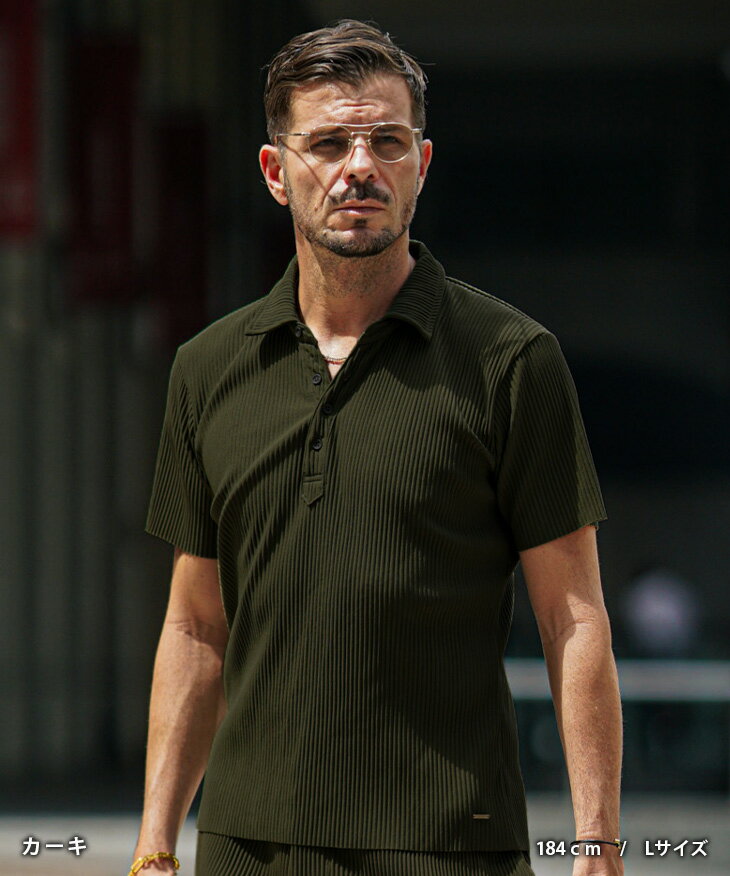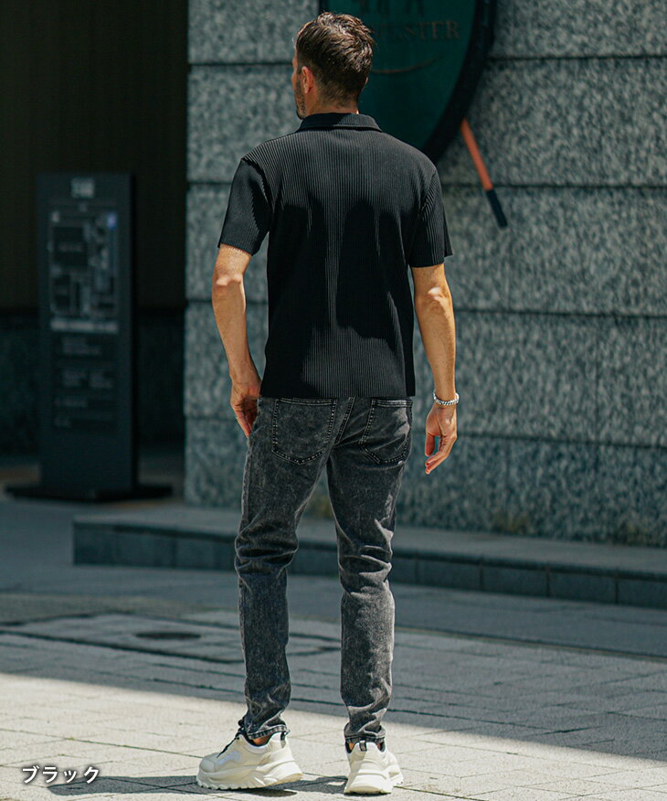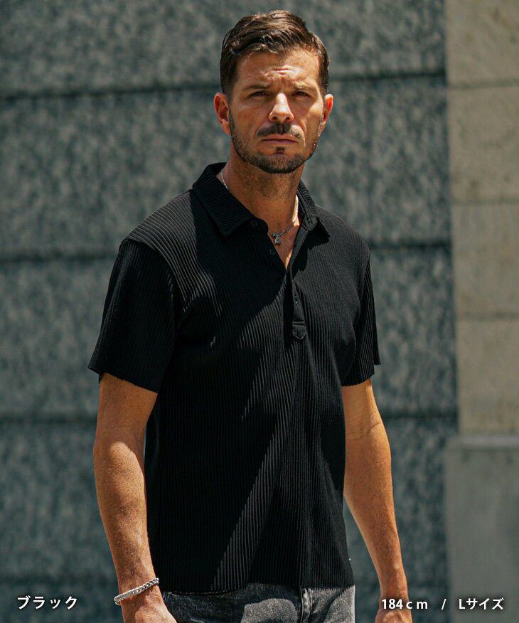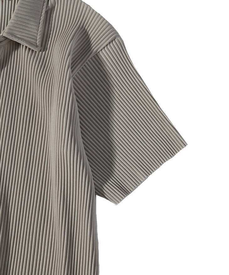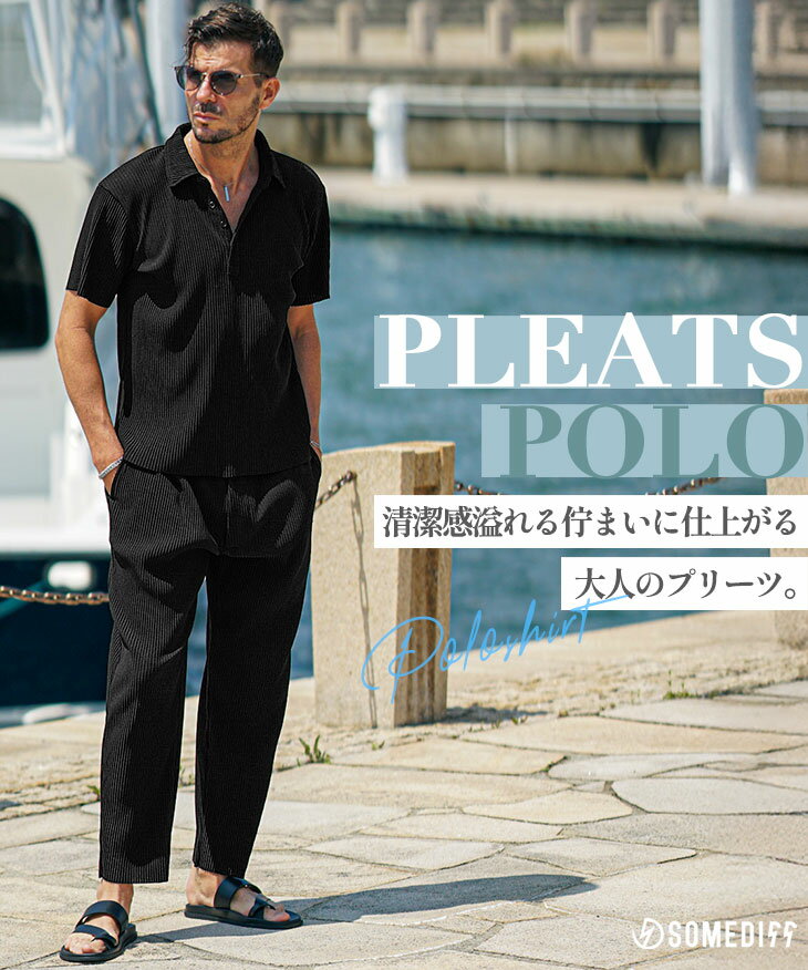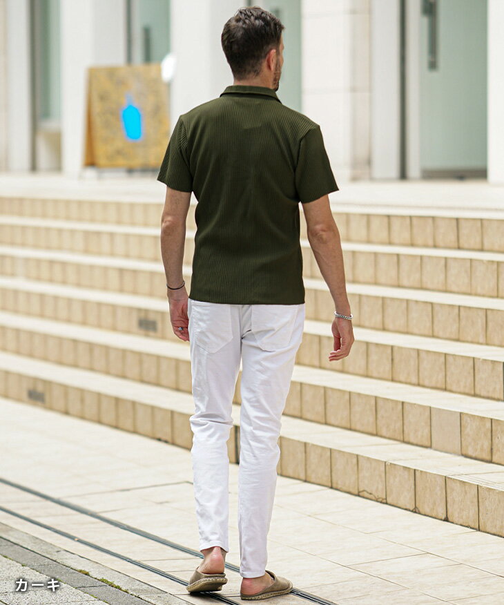 ポロシャツ メンズ 半袖 プリーツ スキッパー ポロシャツ スキッパーシャツ イージーケア Vネック 無地 黒 ブラック カーキ グレー おしゃれ セットアップ対応 夏 夏服 夏物 春夏 メンズファッション ちょいワル オラオラ系 joker ジョーカー