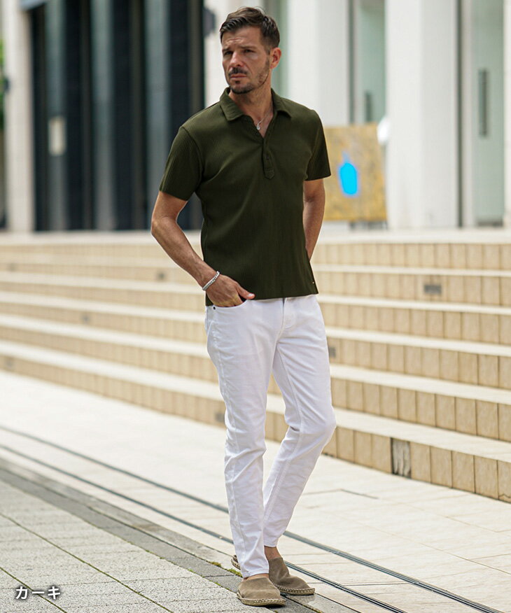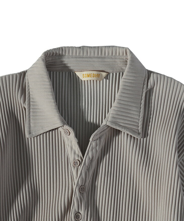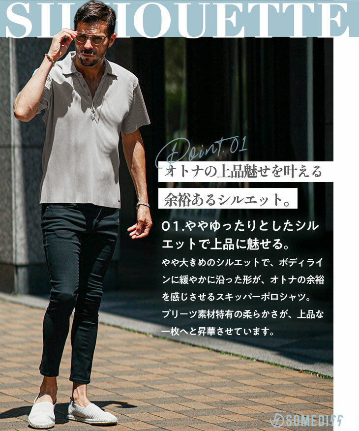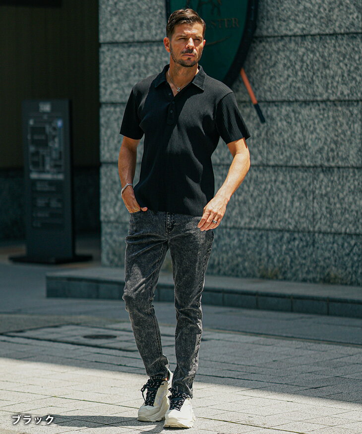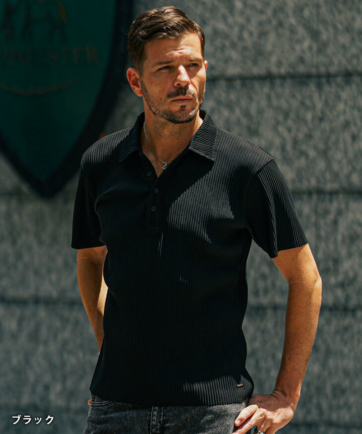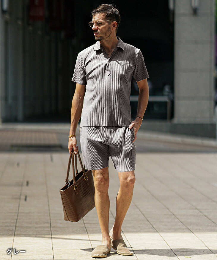 ポロシャツ メンズ 半袖 プリーツ スキッパー ポロシャツ スキッパーシャツ イージーケア Vネック 無地 黒 ブラック カーキ グレー おしゃれ セットアップ対応 夏 夏服 夏物 春夏 メンズファッション ちょいワル オラオラ系 joker ジョーカー
