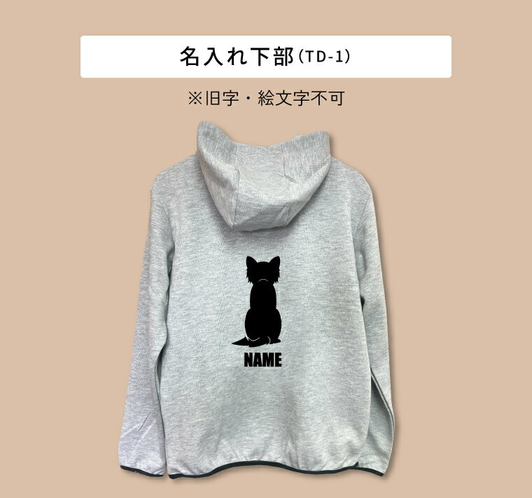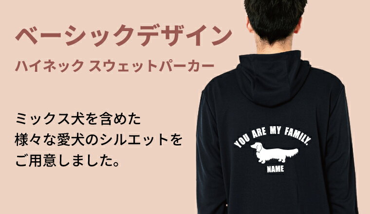 ミドル ハイネック パーカー ジップパーカー 名入れ ベーシック M L LL 薄手 ドライ スウェット 80犬種対応 ミックス犬 ペット名前入り 犬グッズ うちの子 春夏秋 ギフト プレゼント 誕生日 犬好き パパ 記念 ご褒美 薄い 薄め 軽い お揃い ペアルック