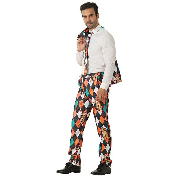 メンズ スーツ 菱形柄 総柄 ハロウィン パーティー 演出服 紳士服 上下セット セットアップ 長袖 ステージ衣装 舞台 大人 司会者 演奏会 学園祭 衣装 おしゃれスーツ コスチューム dg181t2t2t2