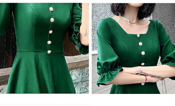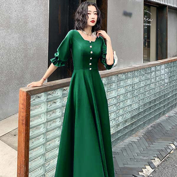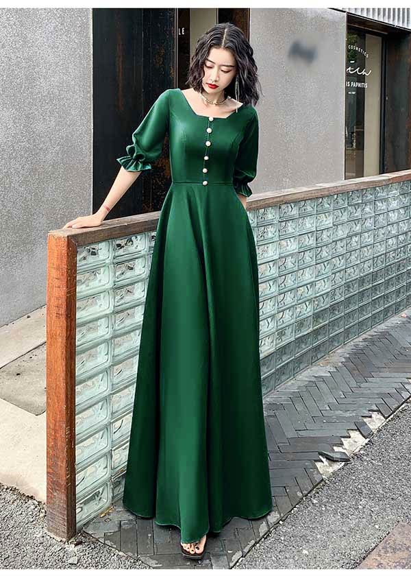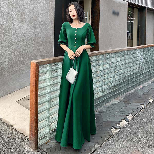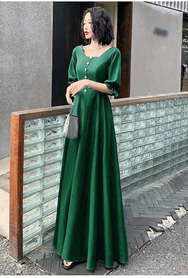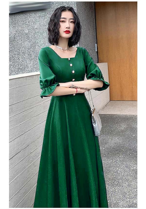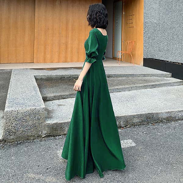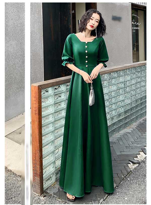 パーティードレス ロングドレス 母親 結婚式 緑 バブルスリーブ スクエアネック ミセス向けドレス 大人 ピアノ 発表会 上品 スタイルいい カクテルドレス ノースリーブ お呼ばれ 20代 40代 50代 演奏会 コンサート 同窓会 韓国風 Aライン イブニングドレス 緑 da054x1x1t2