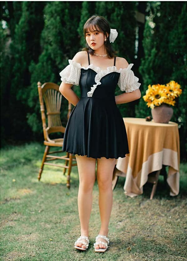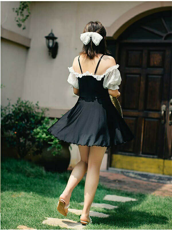 水着 服みたいなオールインワン ワンピース オフショルダー ぽっちゃり 水着 フリル 韓国 レディース 水着 体型カバー 露出控え 大きいサイズ 水着 ぽっちゃり水着 海 沖縄 温泉 大人 可愛い セクシー 着痩せ 送料無料 水着新作 ブラック