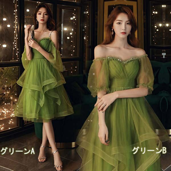 送料無料 エレガント ドレス 大人 ピアノ 発表会 アシンメトリードレス オフショルダー グリーン 透明感あり ファスナータイプ 小さいサイズ パーティー 演奏会 結婚式 ワンピース 大きいサイズ 成人式 同窓会 母親 袖あり お呼ばれ 20代 30代 dw172zezet2