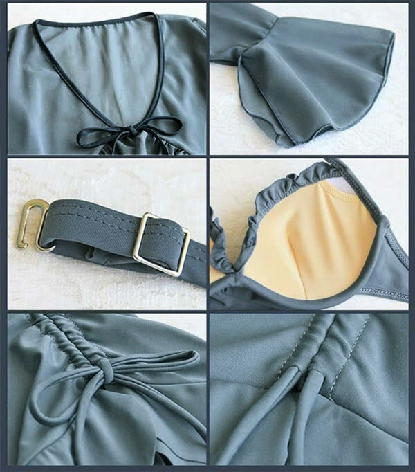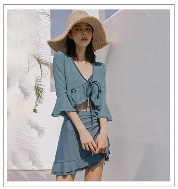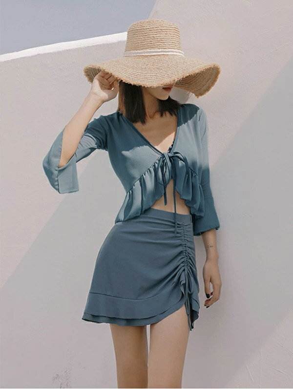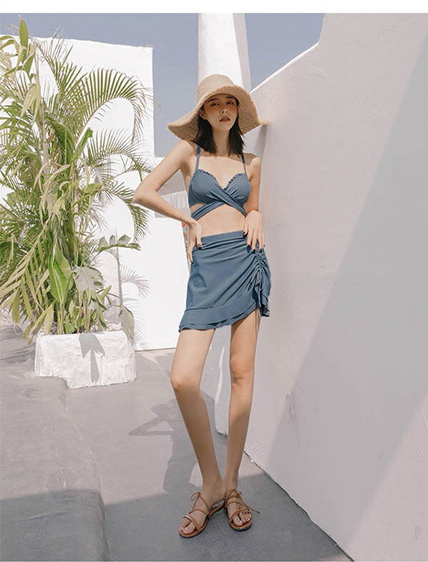 水着 服みたいな レディース ハイウエスト 体型カバー ビキニ フリル セパレート ビキニ クロスバンド トップス付き ボーイレッグ スカート 露出控え パッド付 大きいサイズ 海 プール 旅行 温泉 かわいい セクシー 大人カラー 青