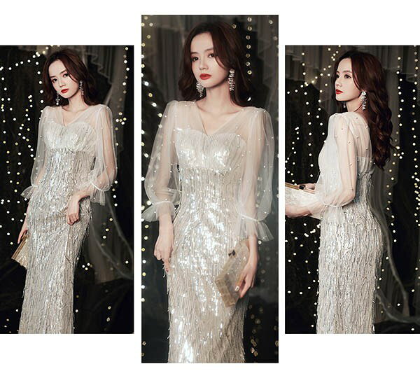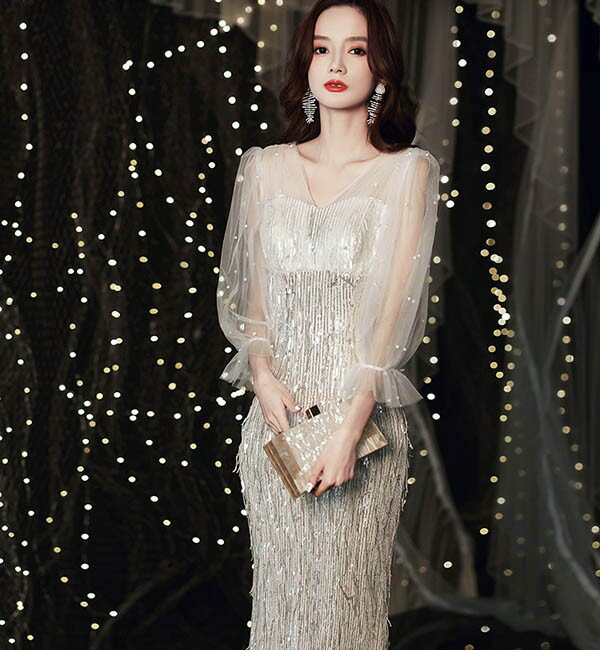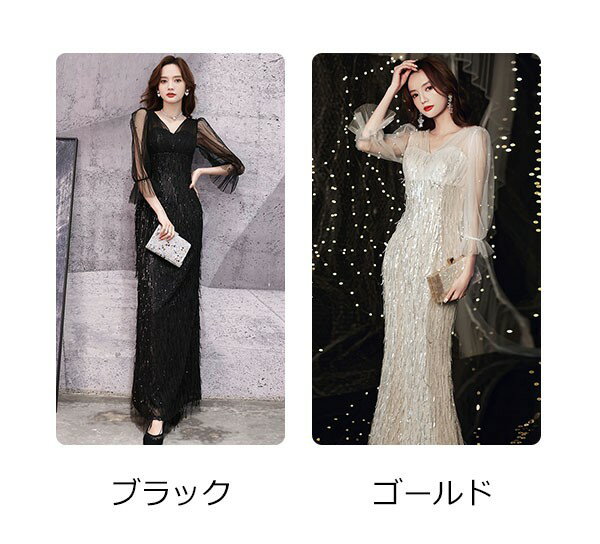 ロングドレス ドレス マーメイド 黒 袖あり ポワン袖 カシュクール キラキラ 小さいサイズ 大きいサイズ 大人 演奏会 ピアノ 発表会 母親 結婚式 ロング 4L 体型カバー 謝恩会 卒業式 花嫁 ステージ ブラック ゴールド 20代 30代 40代 da133n1n1t2