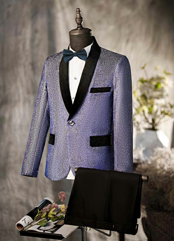 タキシード メンズ スーツ フォーマル 結婚式 演奏会 舞台 イブニングコート 紳士服 司会者 男性 ビジネス メンズスーツ リボン付き ステージ 合唱団 演出 発表会 キラキラ ブルー S M L 2L 3L 4L dt077t2t2t2