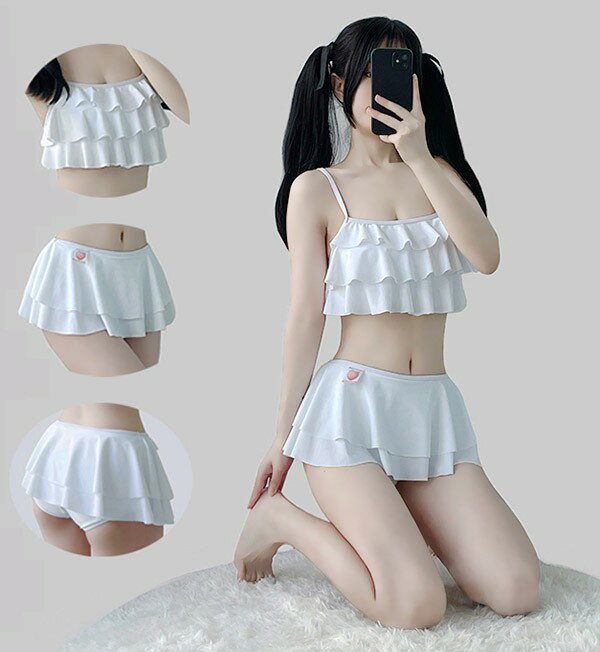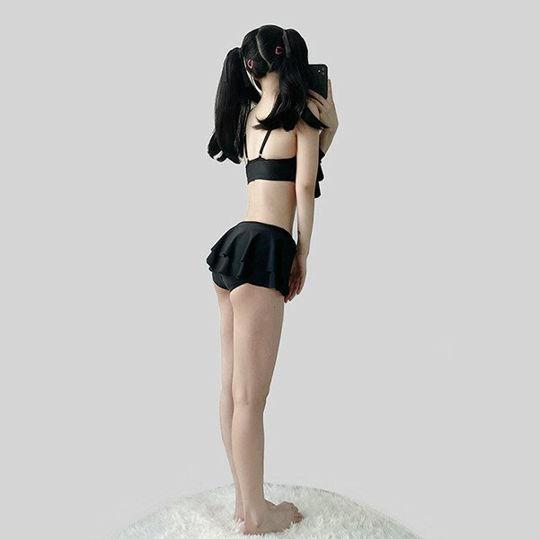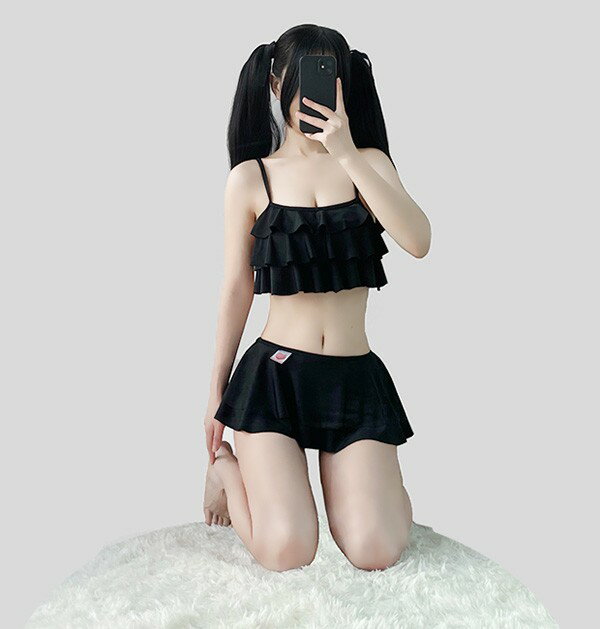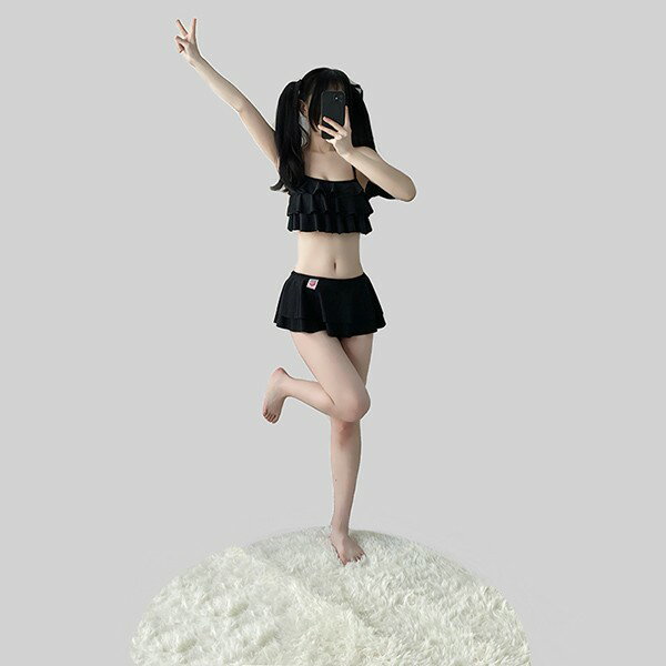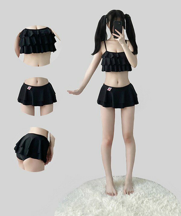 水着 上下セット ビキニ レディース フリル かわいい シンプル 黒 白 水着 着痩せ 学生水着 撮影 温泉 プール ビーチ S M L ec116t2t2t2