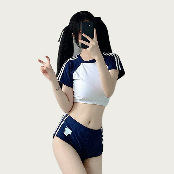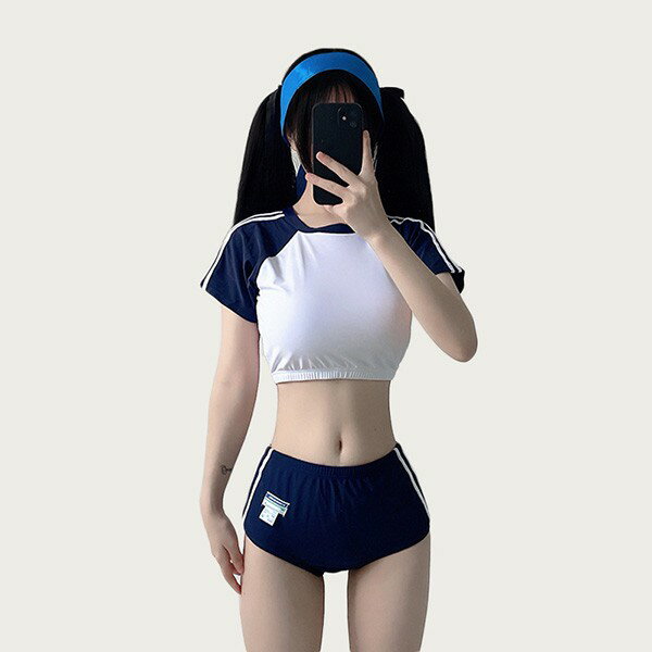 水着 レディース かわいい シンプル 2点セット 学生水着 撮影 温泉 プール ビーチ ネイビー ブルー ダークブルー ホワイト S M ec120t2t2t2