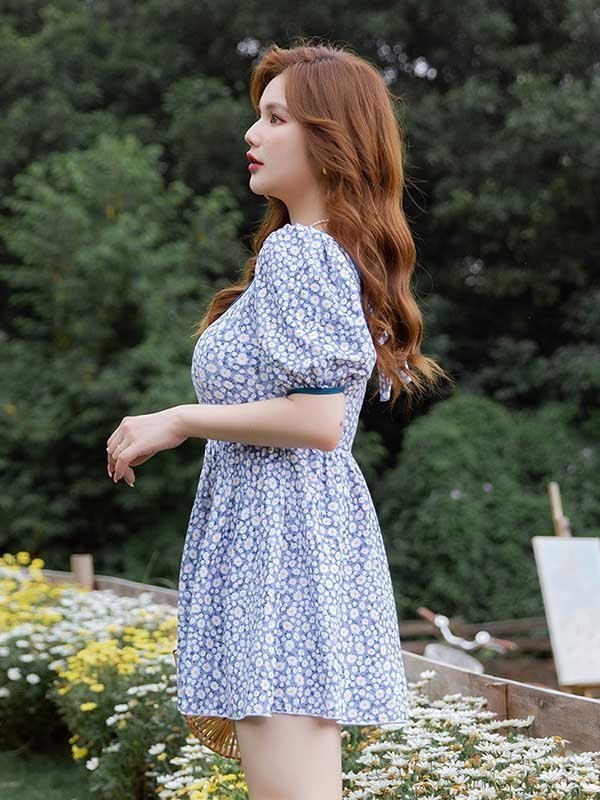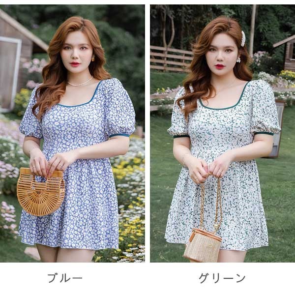 ワンピース水着 服みたいな ぽっちゃり 水着 レディース 大きいサイズ 韓国 ガール 可愛い 袖付き 痩せ見え 体型カバー 花柄 ぽっちゃり水着 温泉 ビーチ プール 海 水泳 セクシー オトナ女子 かわいい ブルー グリーン 2l 3l 4l 5l 6l df171n1n1t2