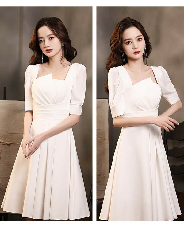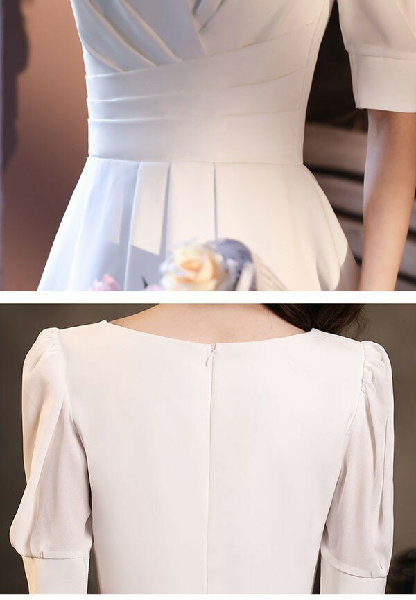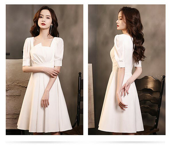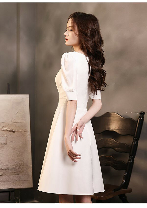 ミニ丈 ドレス 白 ショートドレス 袖あり 大きいサイズ 小さいサイズ Aライン カクテルドレス 半袖 ひざ上丈 パーティードレス 結婚式 母親 ドレス ピアノ 発表会 演奏会 披露宴 謝恩会 春 夏 20代 30代 40代 ホワイト S 2XL da135x1x1c6