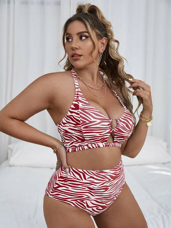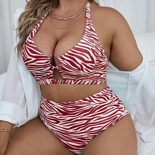 ビキニ水着 ホルターネックゼブラ柄 大きいサイズ ぽっちゃり 女の子 ワイヤーなし パッド付 レディース ハイウエスト 体型カバー セパレート 海 プール リゾート かわいい セクシー 韓国風 大人 女性用 プラスサイズ df138x1x1t2