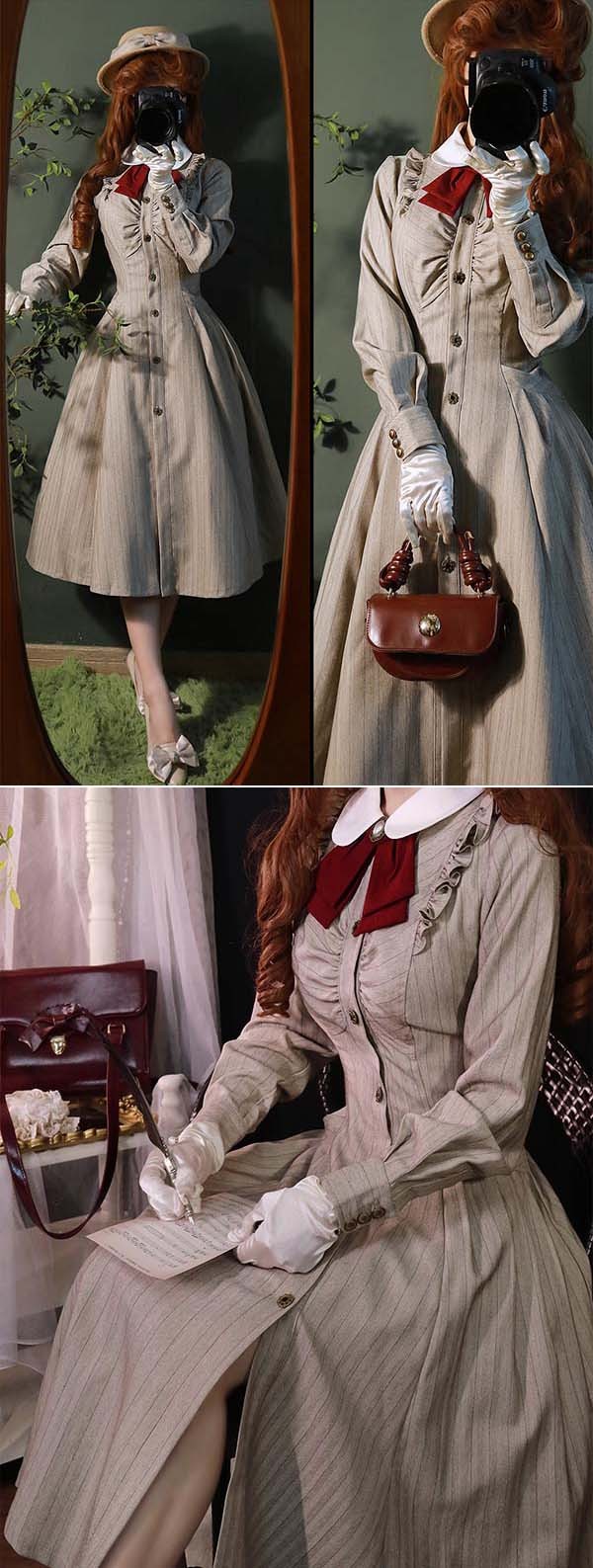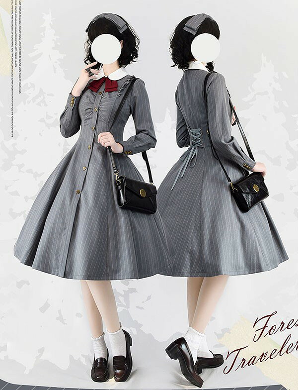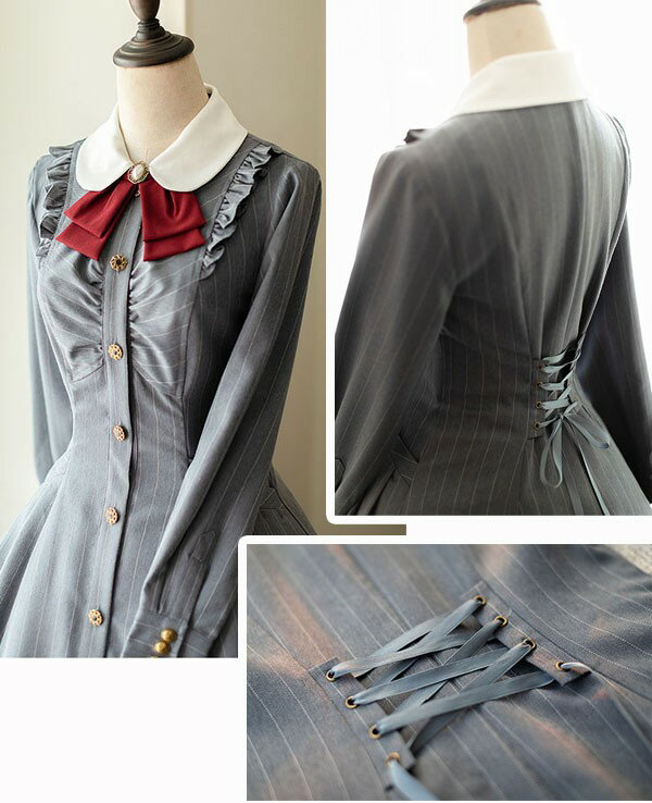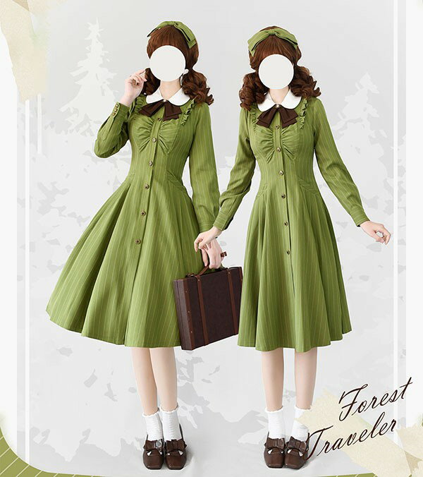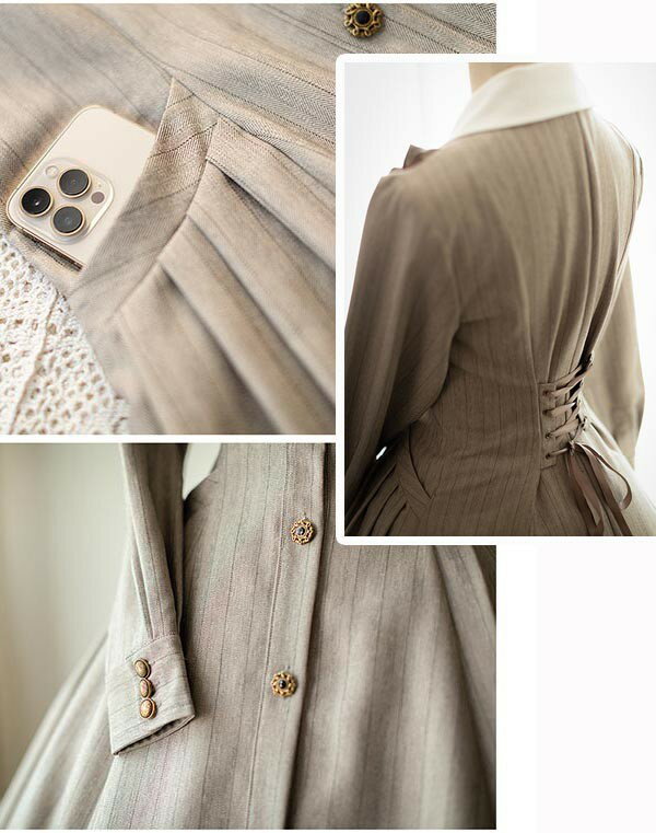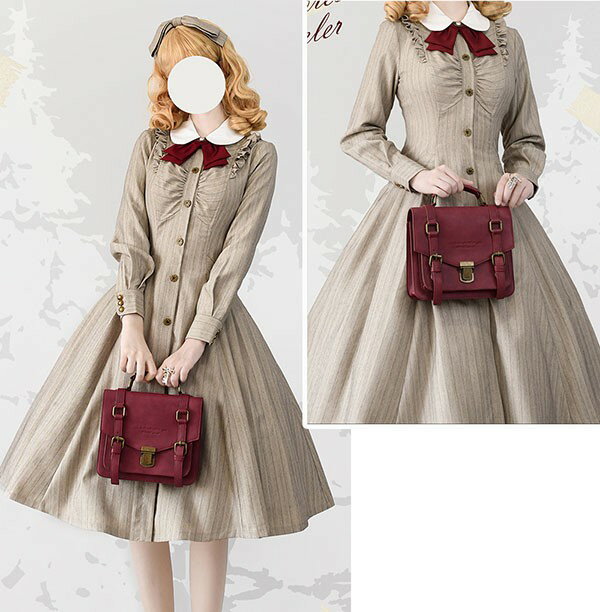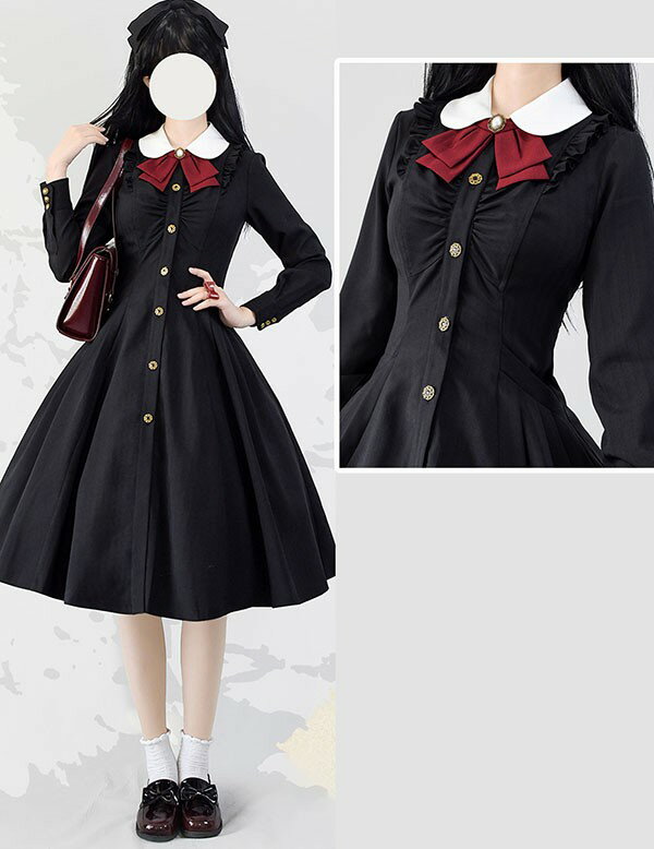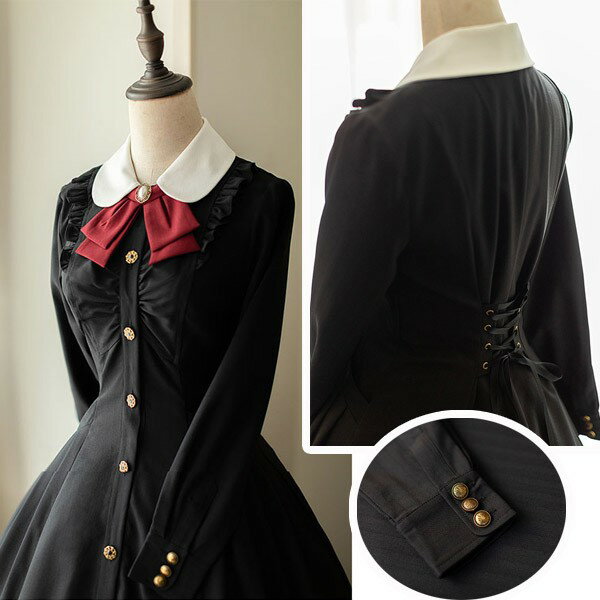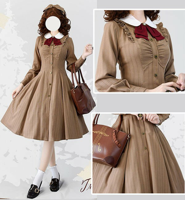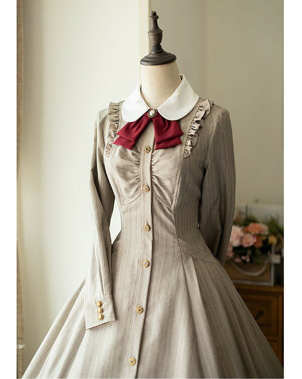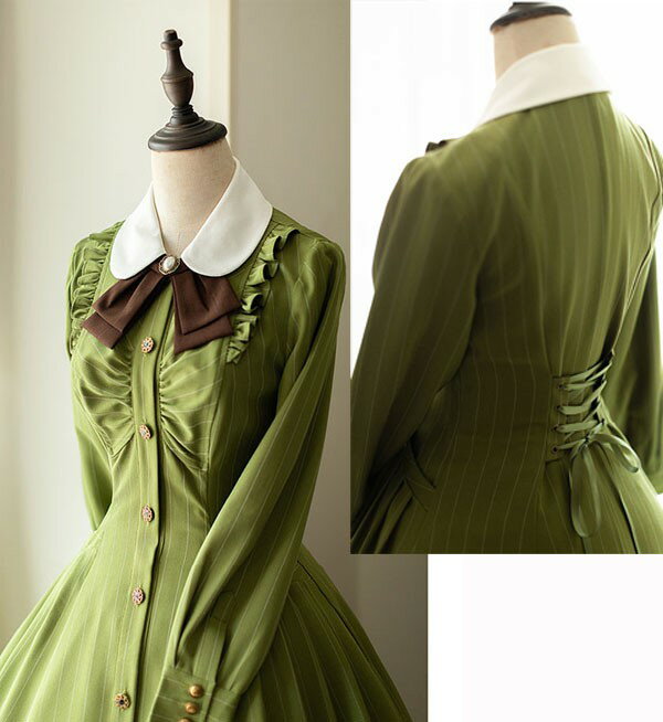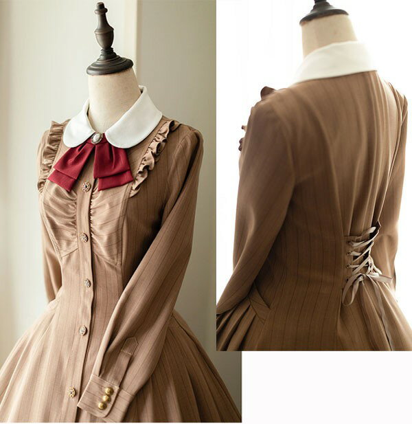 ロリータ ワンピース レディース ロング lolita フレアスカート イギリス風 可愛い 大人 ブラウン ブラック グリーン ベージュ グレー S M L XL 2XL cm071t2