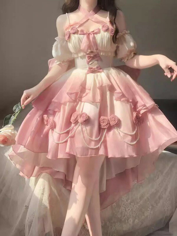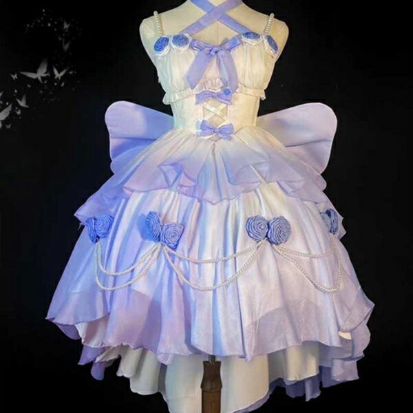 ロリータ jsk ワンピース 可愛い レディース ゴスロリ ロリィタファッション フリル 肩出し ロリータワンピース プリンセス風 姫系 コスチューム コスプレ衣装 コーディネート 仮装 パーティ イベント ステージ 文化祭 学園祭 ブルー ピンク 大きいサイズ S M L da328m4m4m4