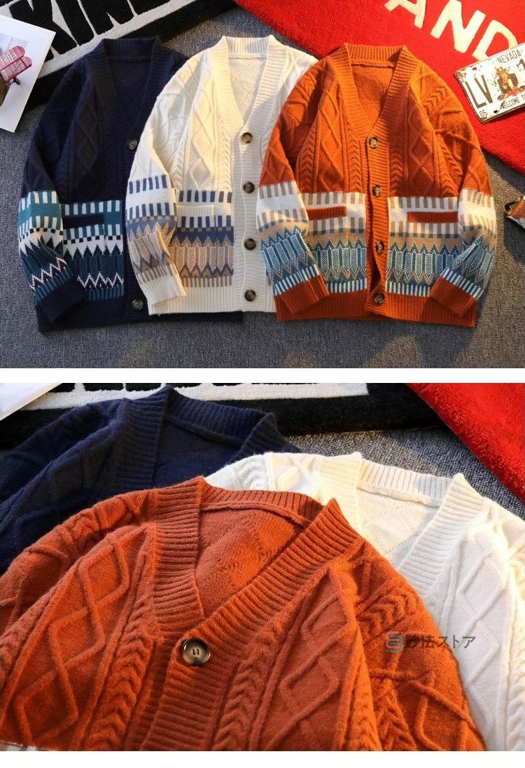 ニットカーディガン メンズ レディース ケーブルニット 長袖 カーディガン トップス カジュアル スクール ストリート ニットジャケット セーター メンズファッション ケーブル編みニット 秋服 秋冬