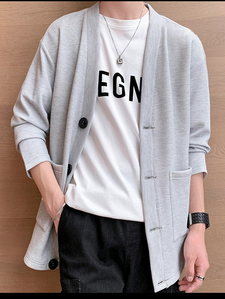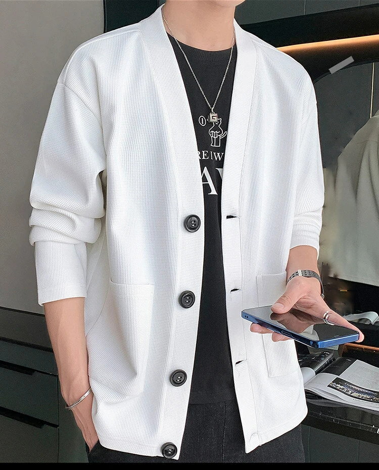 【送料無料】カーディガン メンズ 前開き ライトアウター ワッフル ジャケット 羽織り 無地 パーカー 大きいサイズ ボタン留め 男女兼用 コーデ 薄手 春物 メンズカーディガン 秋物 秋コーデ 冷房対策 長袖 フードなし 前開きパーカー ワッフルカーディガン