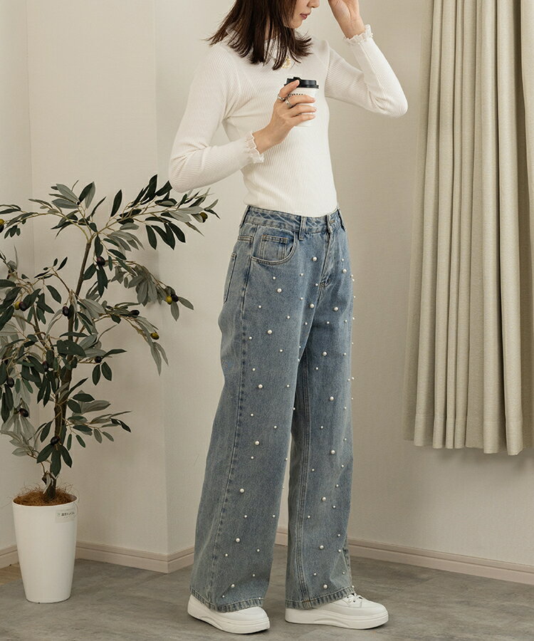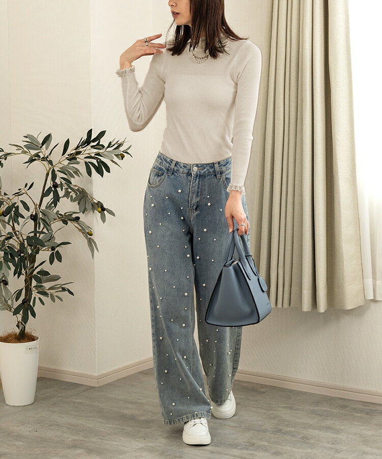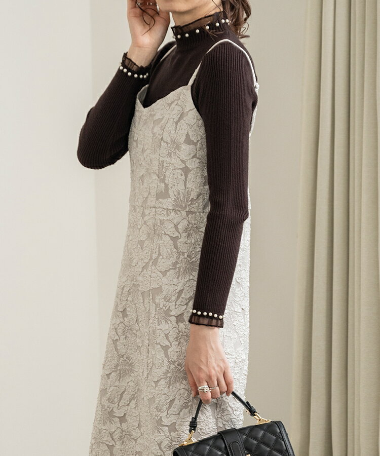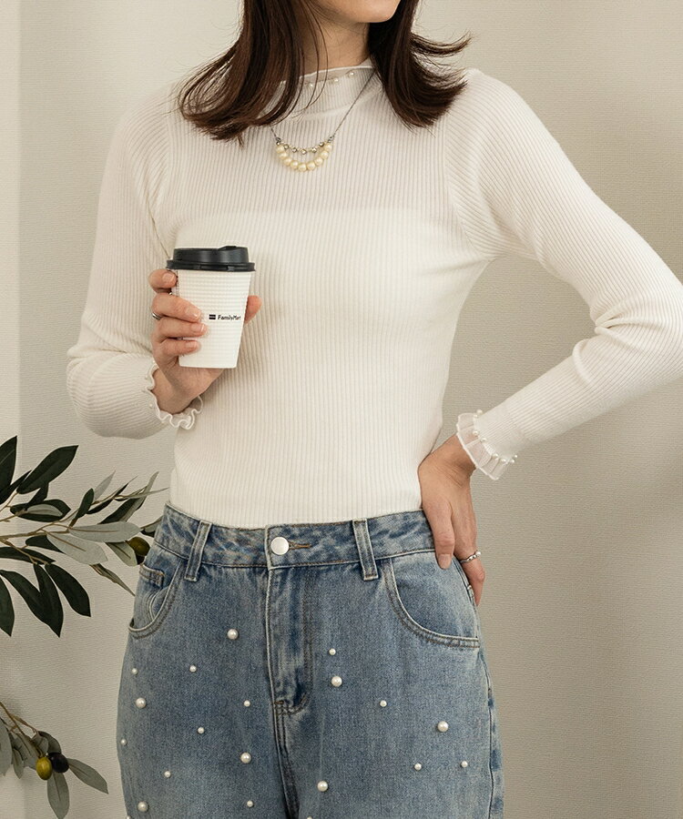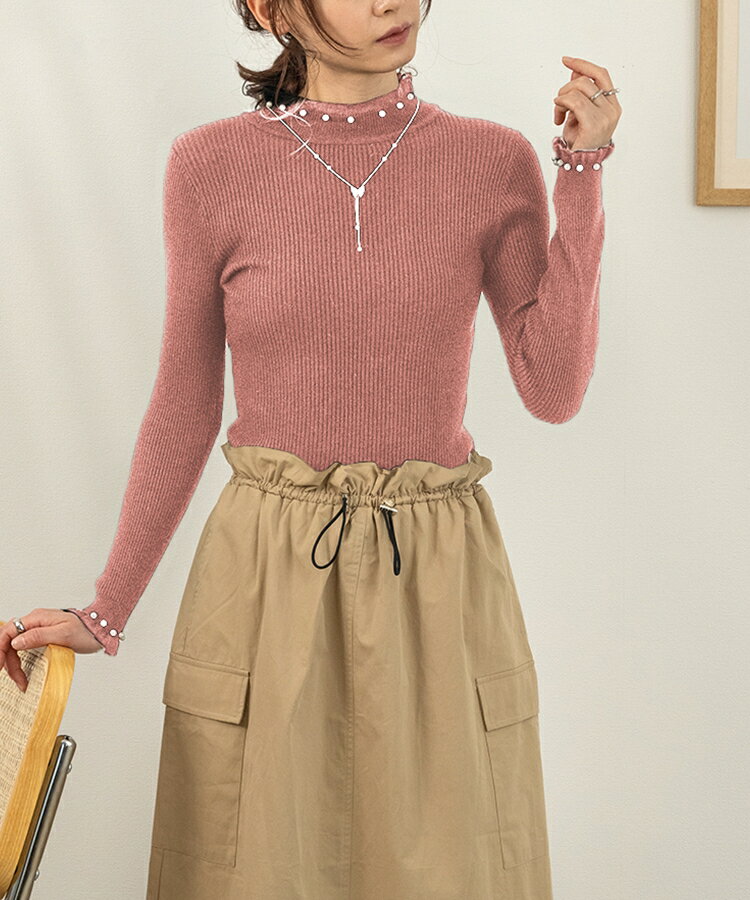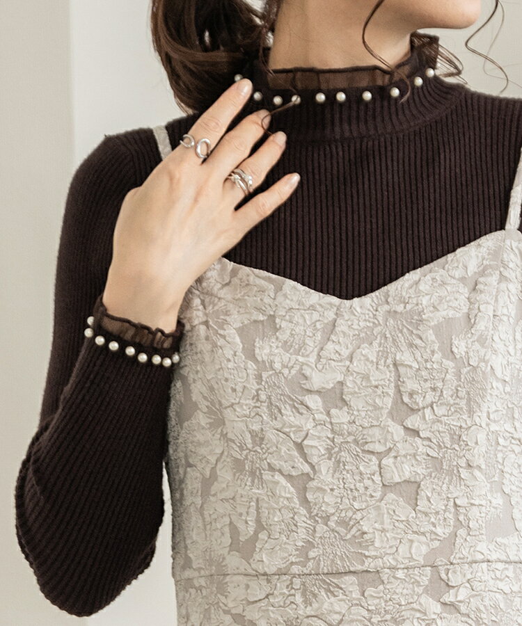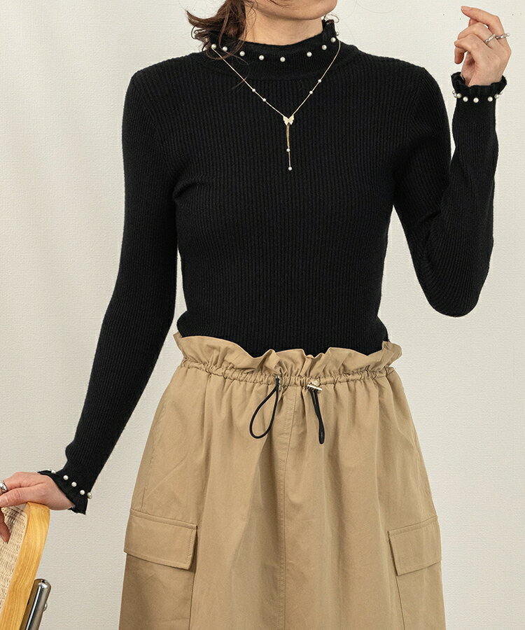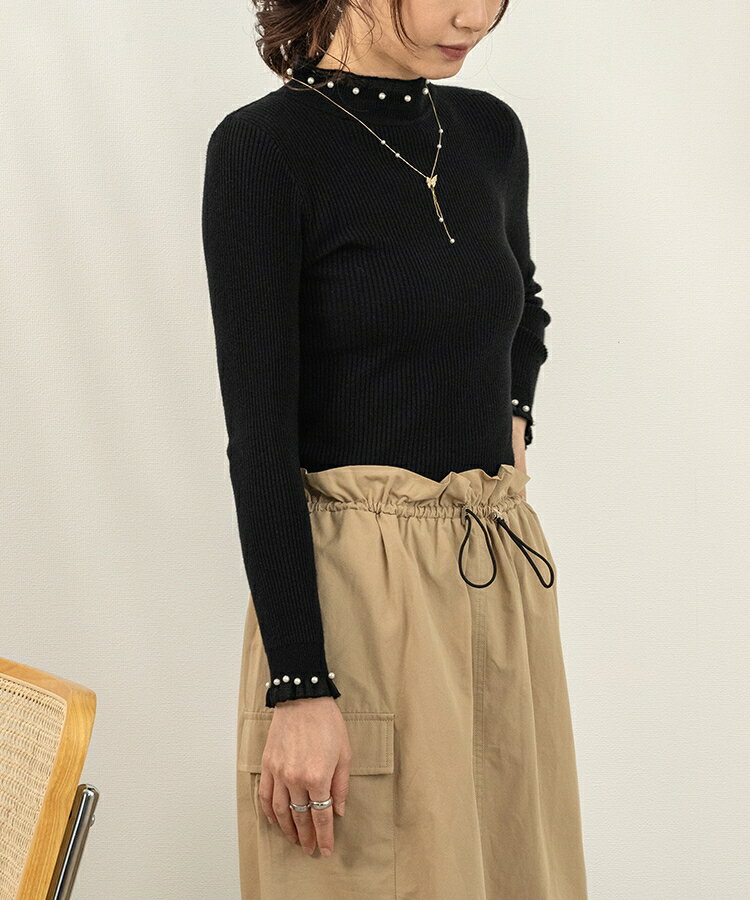 レディース トップス ニット セーター インナートップス パールネックインナートップス パール リブニット ハイネック フリル きれいめ 上品 大人カジュアル ブラック ホワイト グレー ベージュ お洒落 秋冬 冬 20代 30代 40代 moramora aw421007