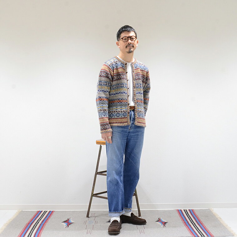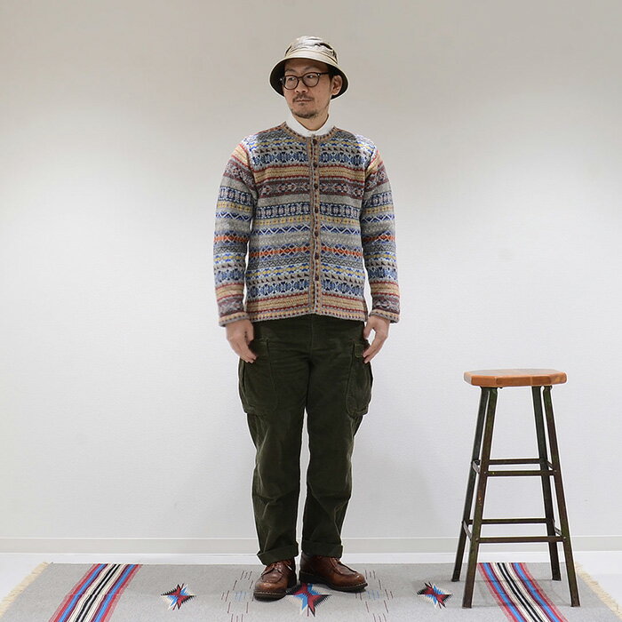 JAMIESON'S (ジャミーソンズ) CREW CARDIGAN WITH BLOCK TRIM SPLIT BASQUE FOOT - 2017_3 カーディガン メンズ