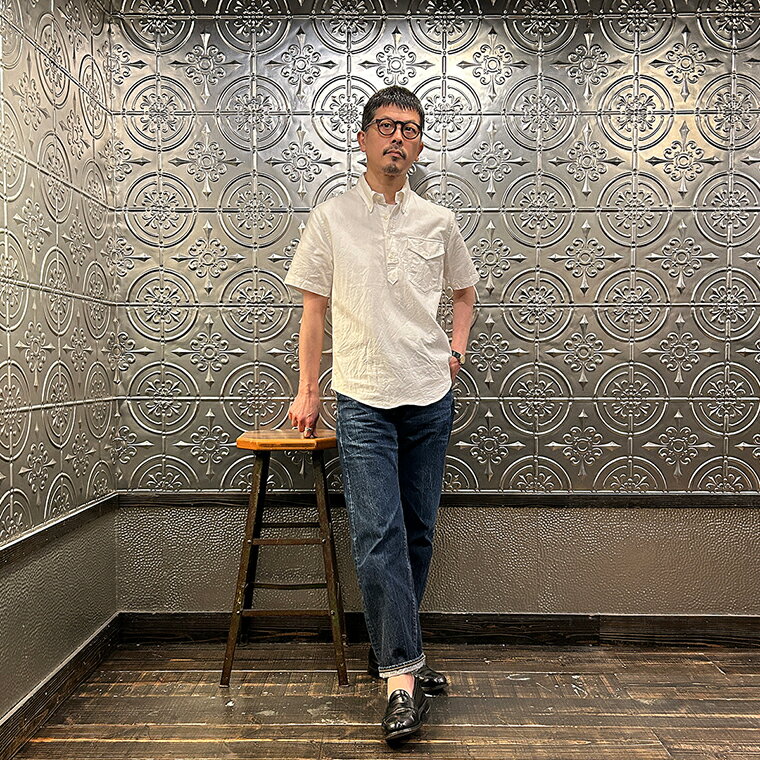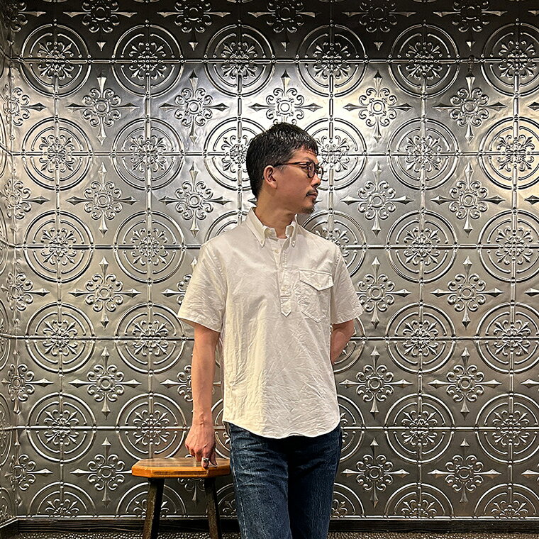 KEATON CHASE USA (キートンチェイスUSA) S/S CLASSIC FIT PULLOVER BD SHIRT PREMIUM OXFORD - WHITE 半袖 オックスフォードシャツ メンズ
