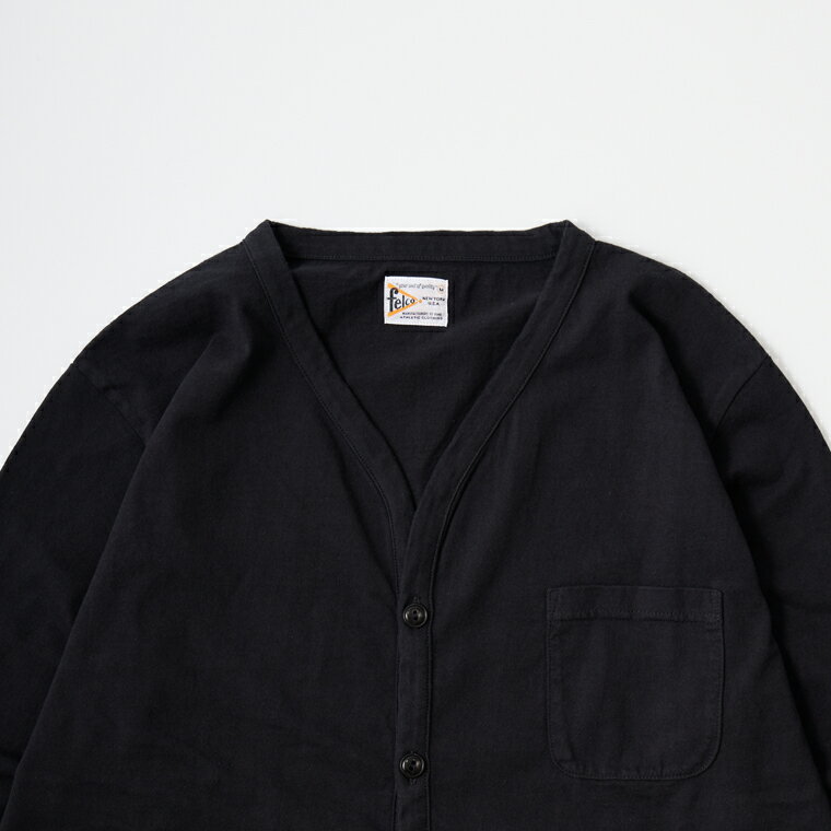 FELCO (フェルコ) L/S BINDER V NECK CARDIGAN W/POCKET 7oz 16SINGLE RUFFY JERSEY - BLACK カーディガン メンズ