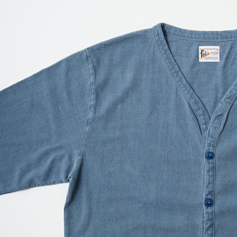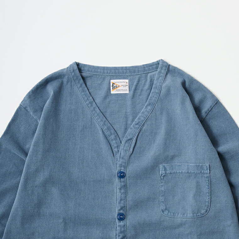 FELCO (フェルコ) L/S BINDER V NECK CARDIGAN W/POCKET 7oz 16SINGLE RUFFY JERSEY - PG NAVY カーディガン メンズ