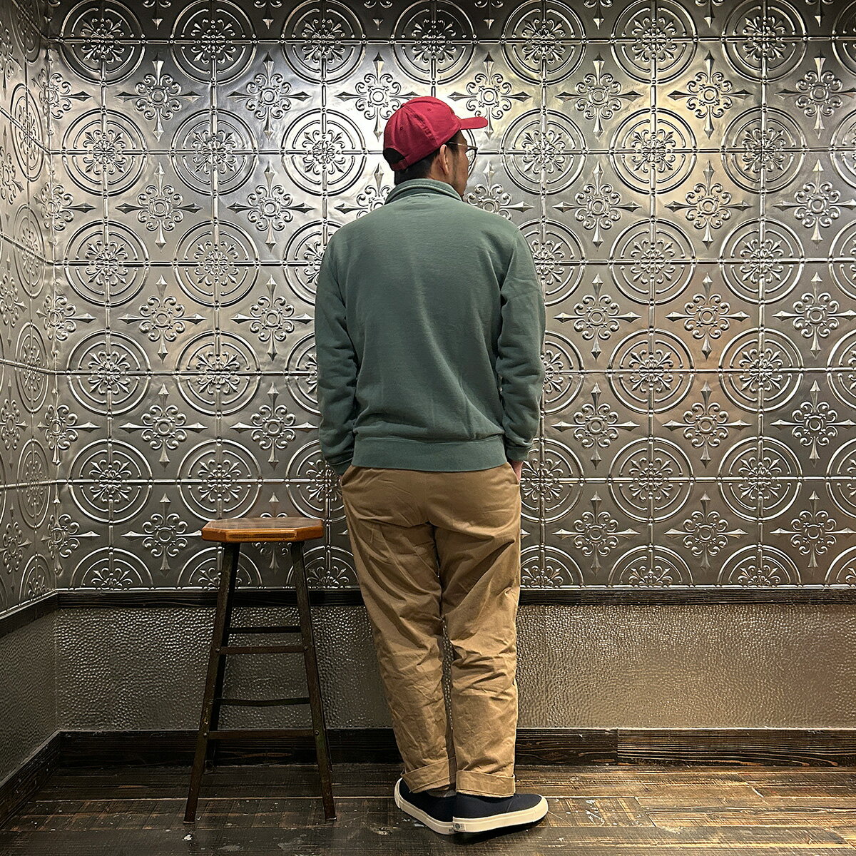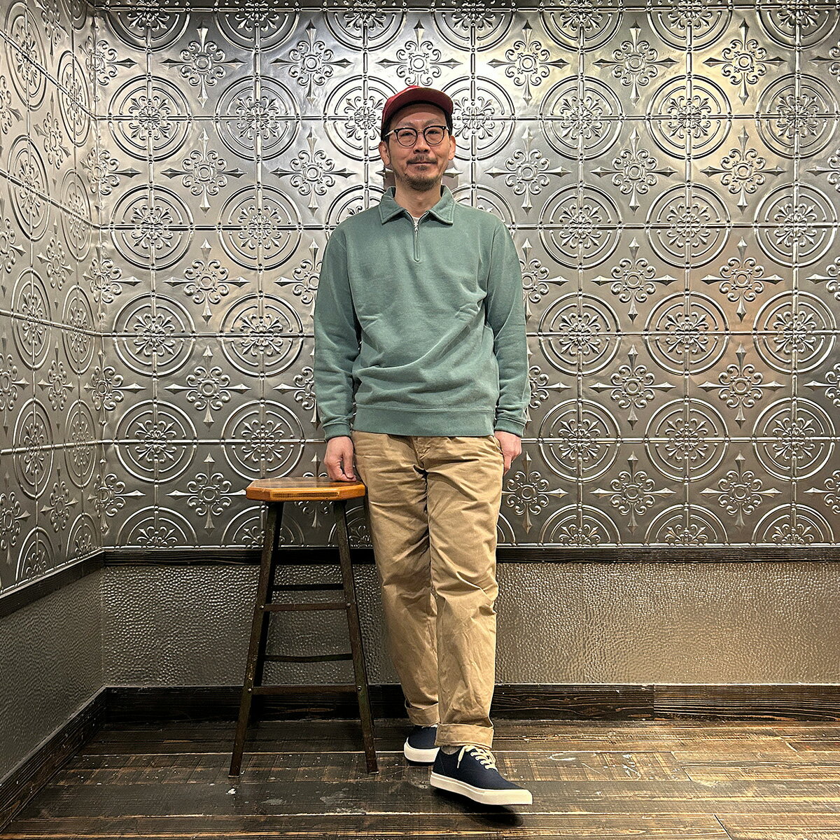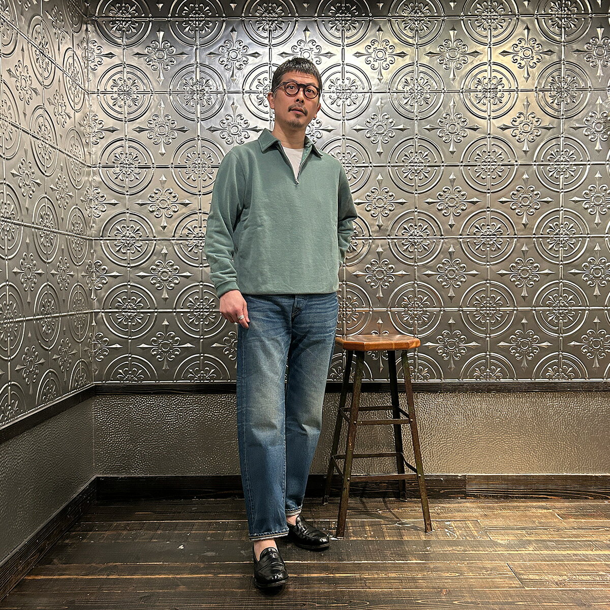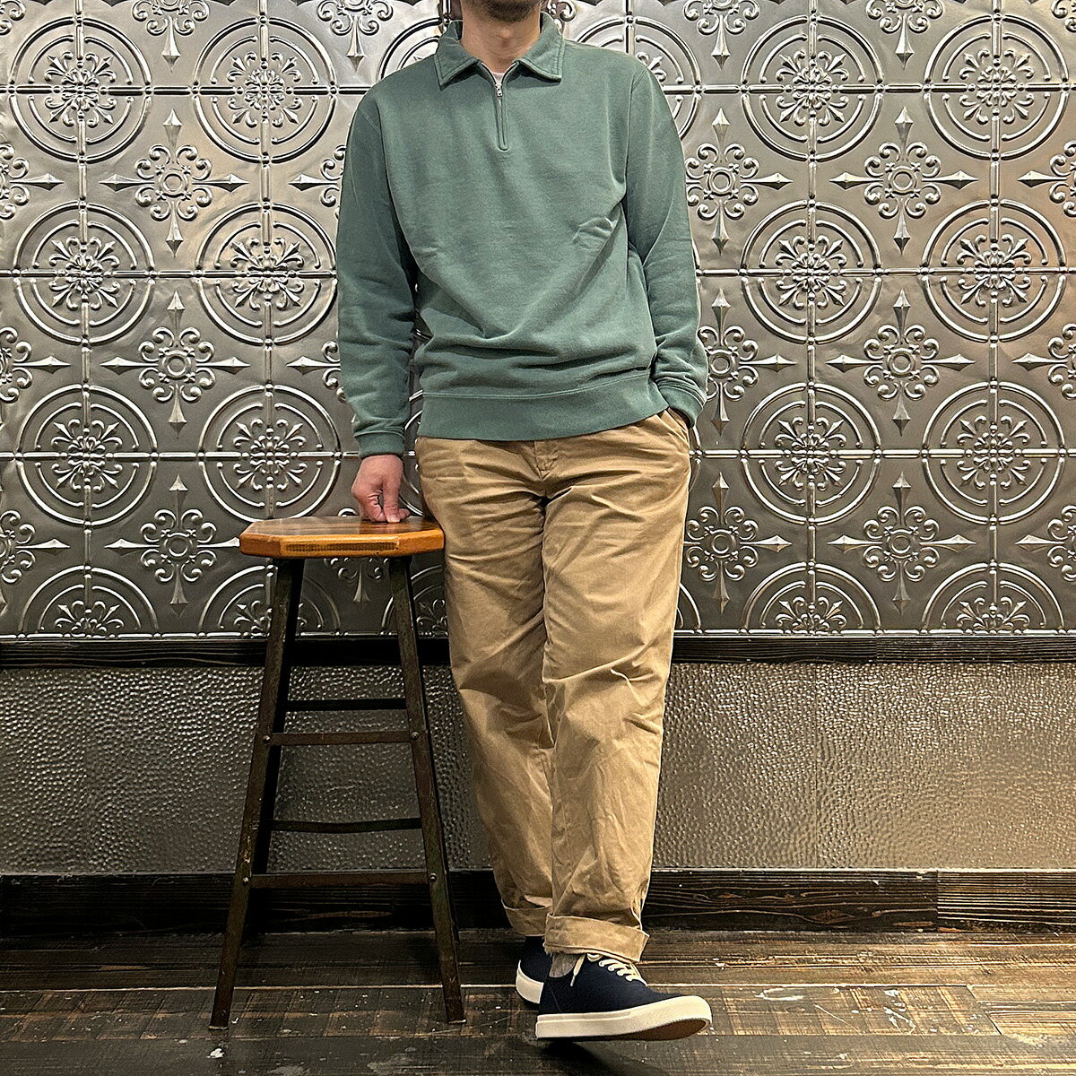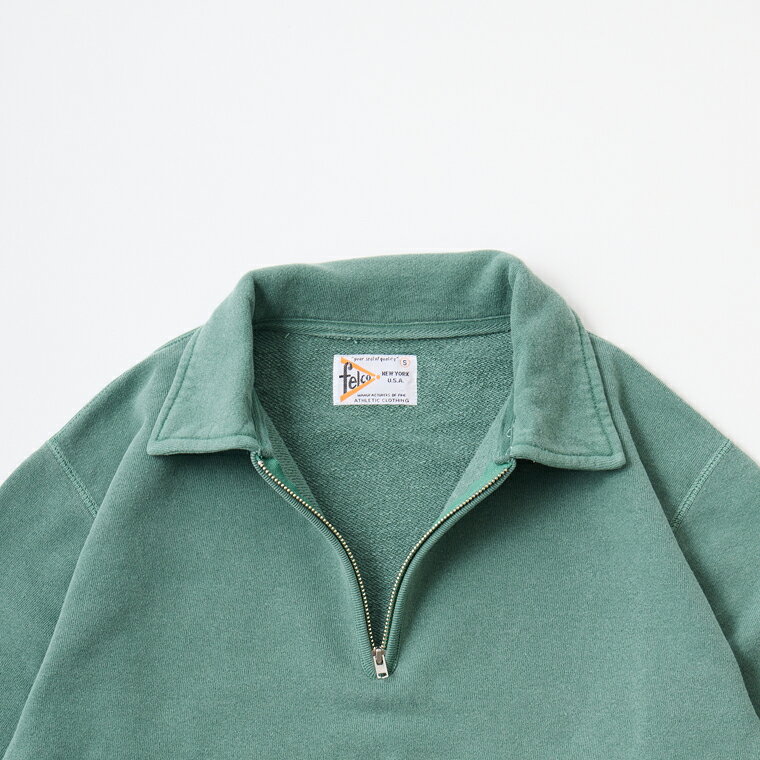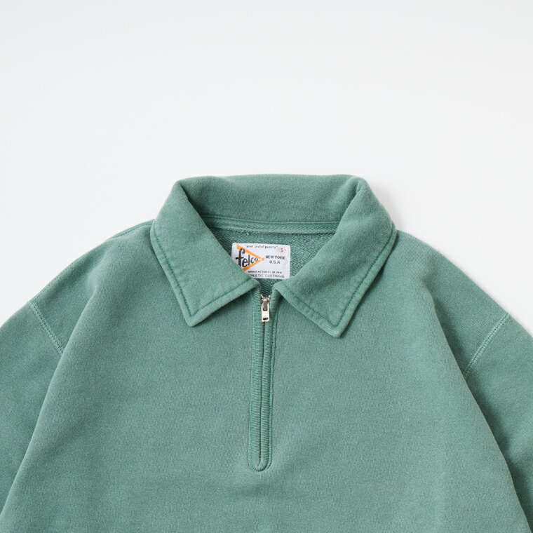 FELCO (フェルコ) 10oz LT WEIGHT FRENCH TERRY L/S HALF ZIP COLLARED SWEATSHIRT - PG GREEN ハーフジップ メンズ
