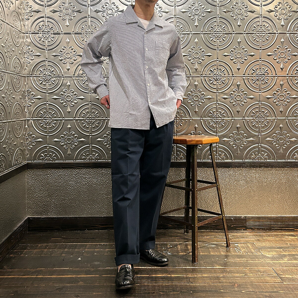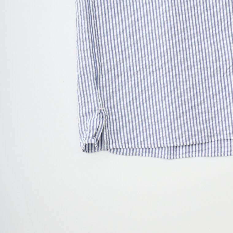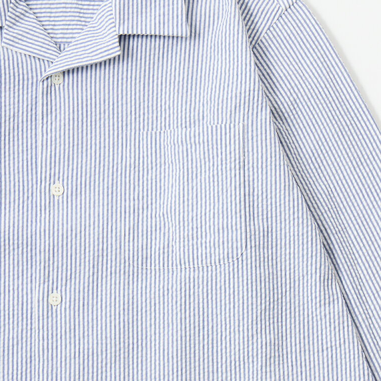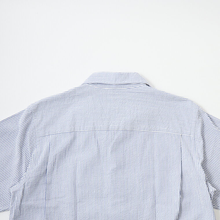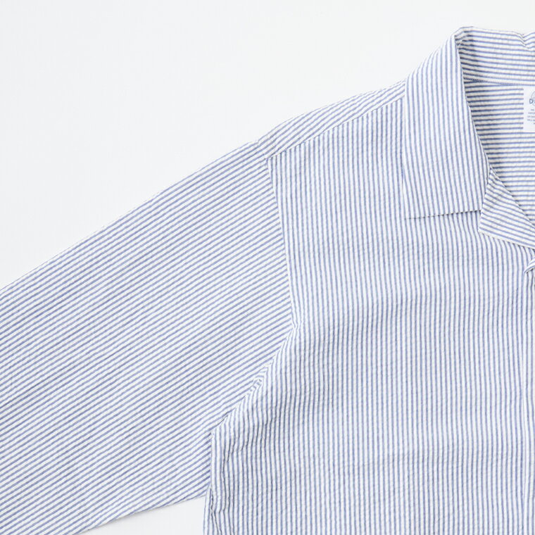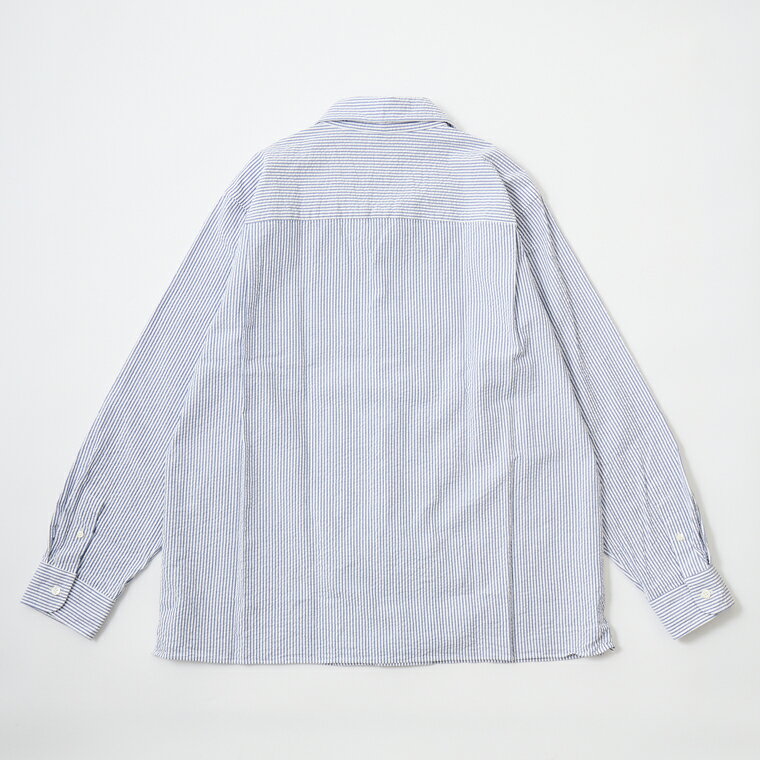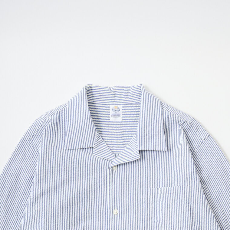D.C. WHITE (ディーシーホワイト) PROFESSOR SHIRT SEERSUCKER - NAVY キャンプカラーシャツ メンズ