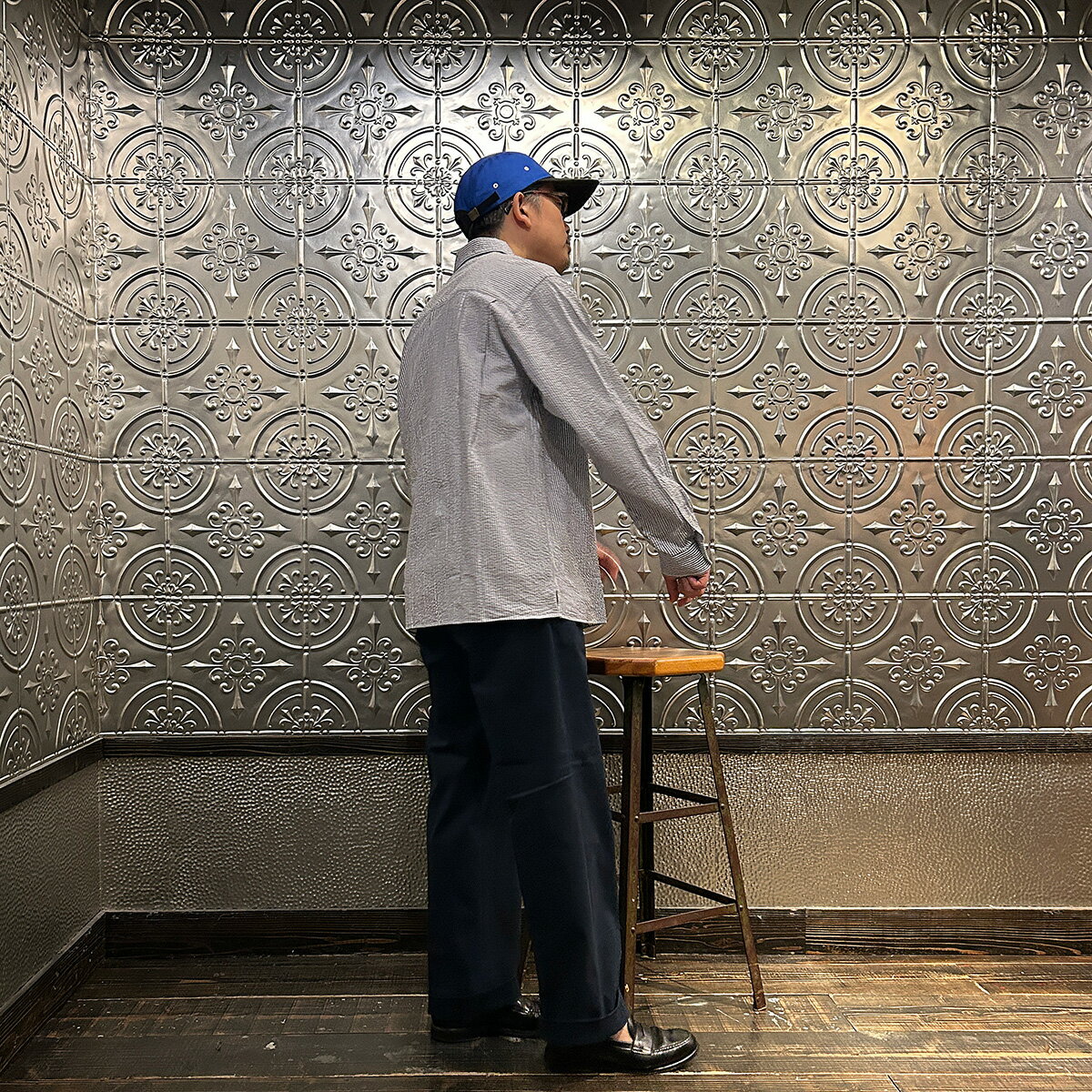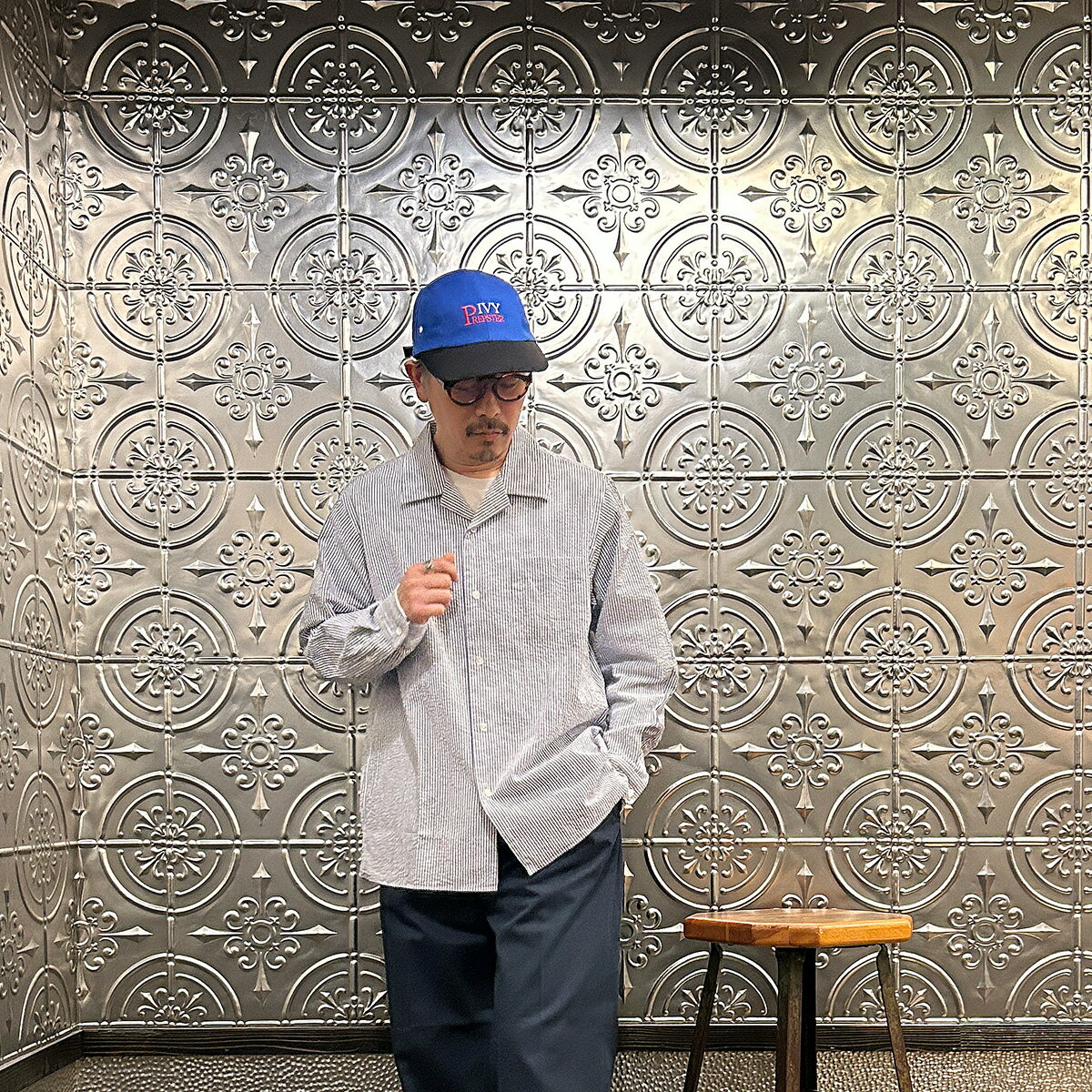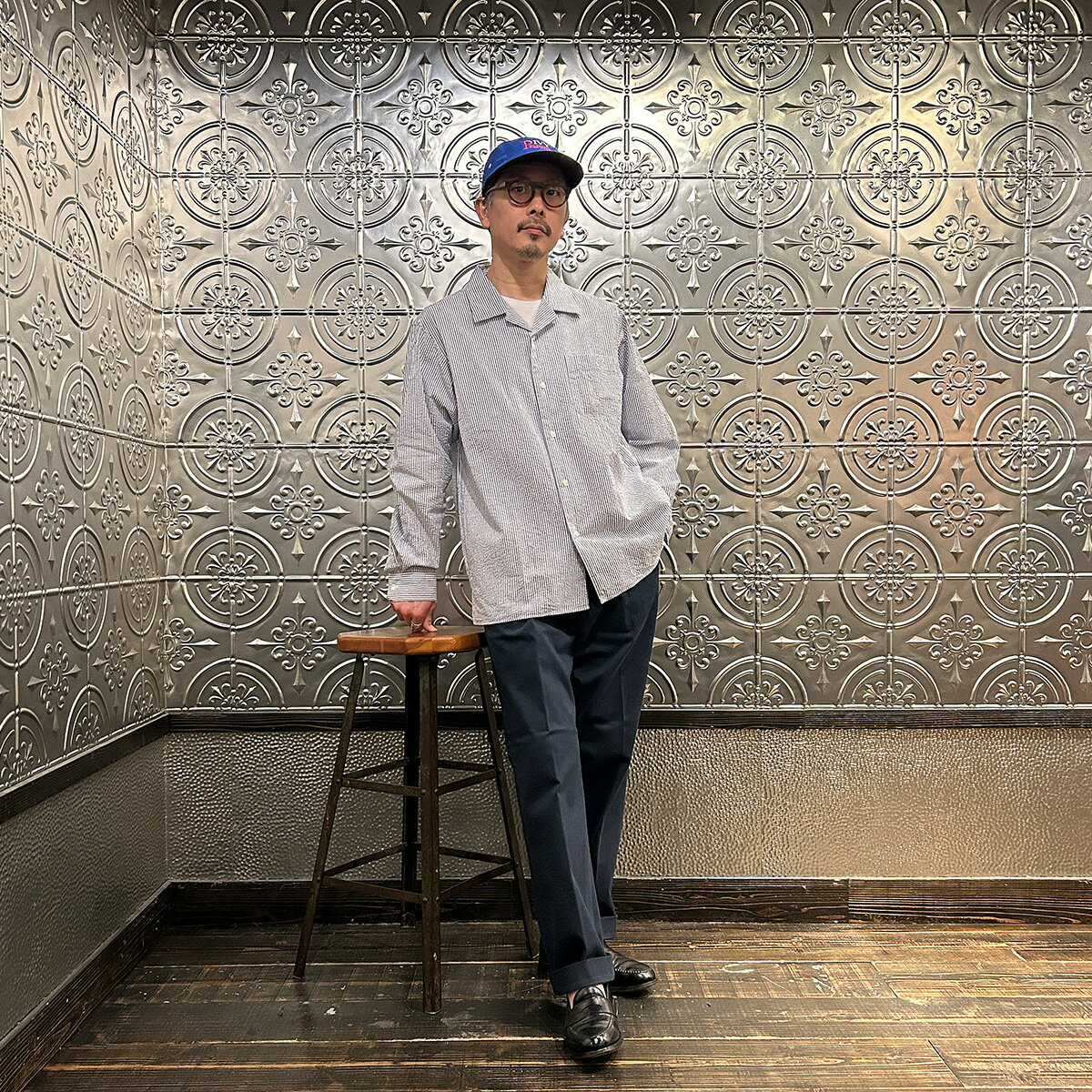 D.C. WHITE (ディーシーホワイト) PROFESSOR SHIRT SEERSUCKER - NAVY キャンプカラーシャツ メンズ