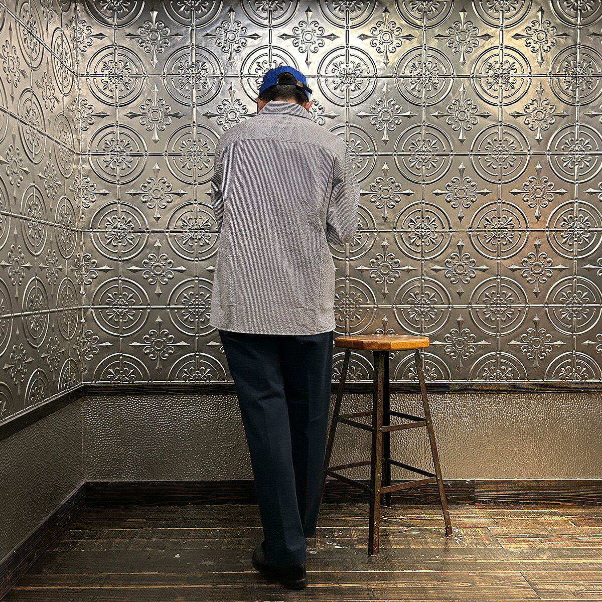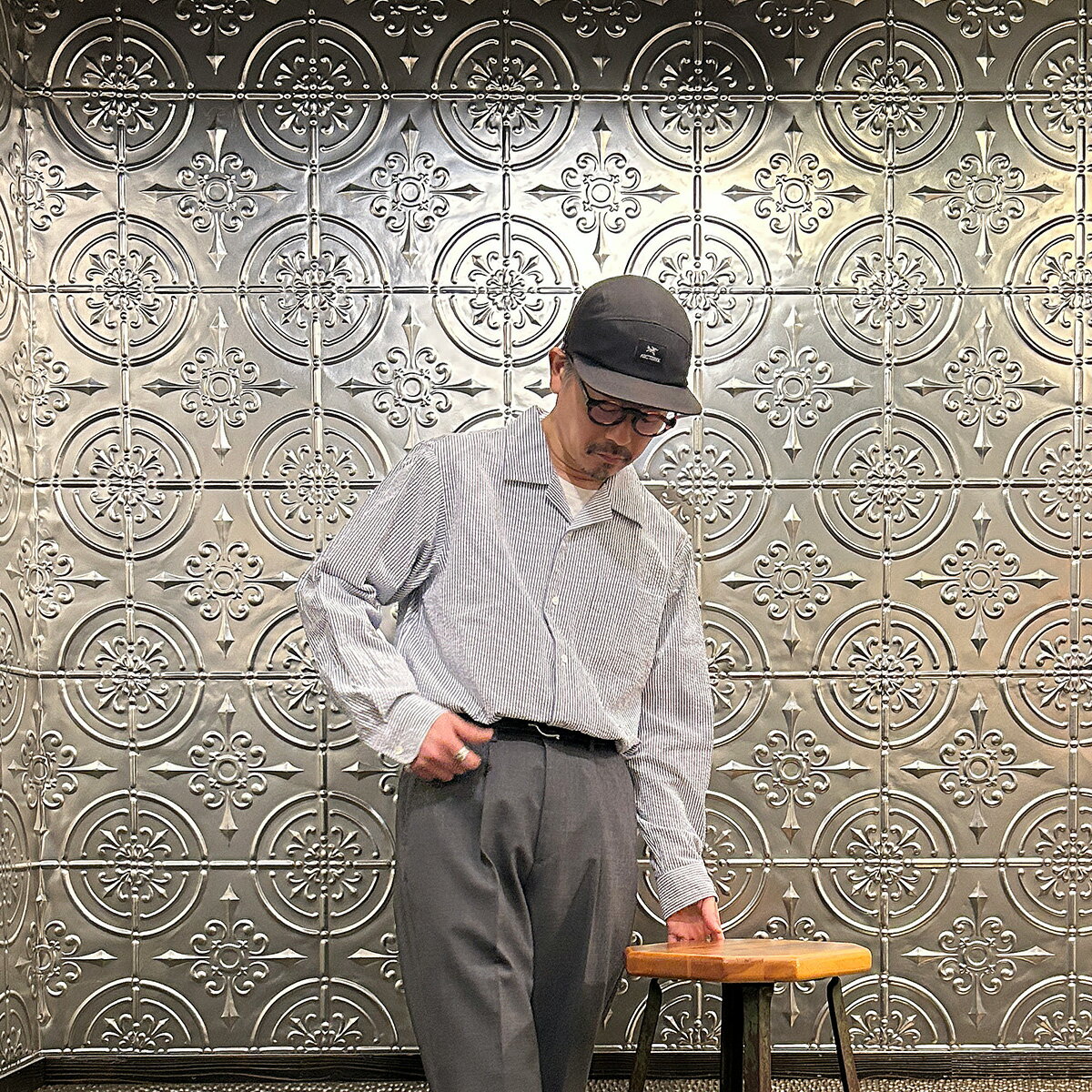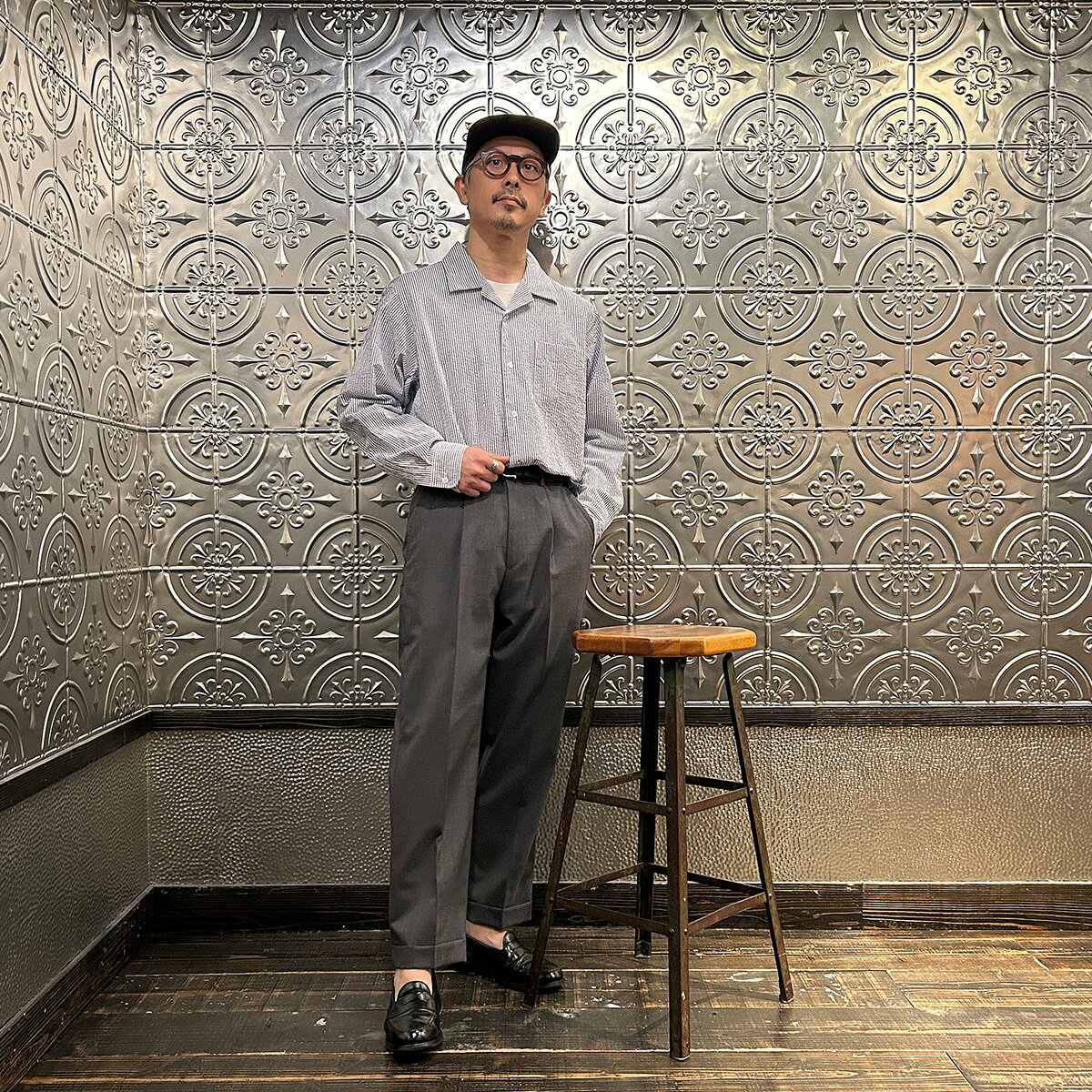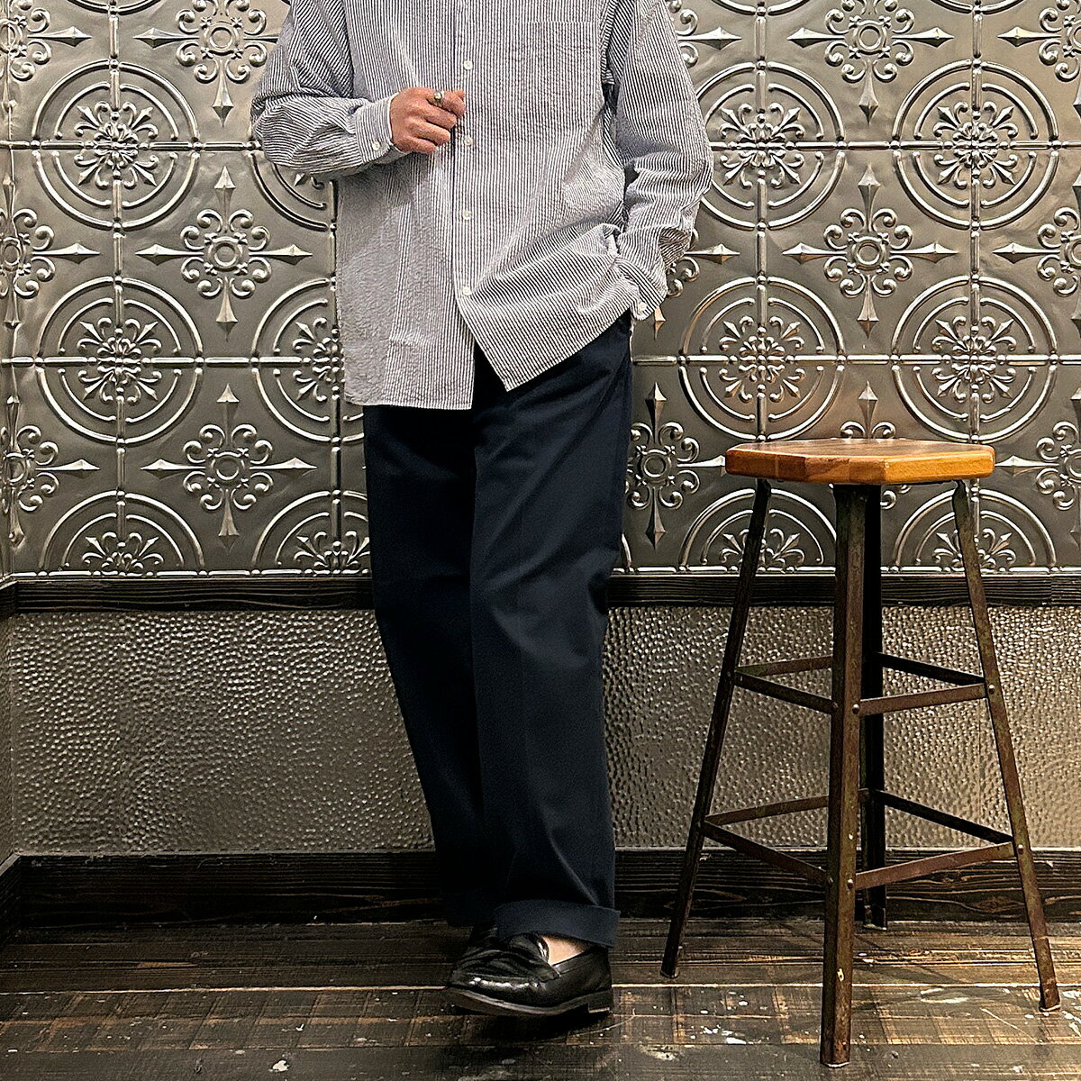 D.C. WHITE (ディーシーホワイト) PROFESSOR SHIRT SEERSUCKER - NAVY キャンプカラーシャツ メンズ