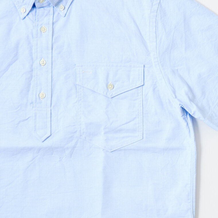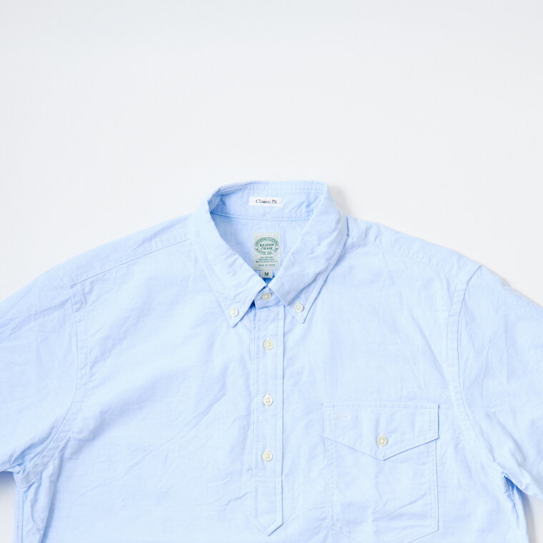 KEATON CHASE USA (キートンチェイスUSA) S/S CLASSIC FIT PULLOVER BD SHIRT PREMIUM OXFORD - LT BLUE 半袖 オックスフォードシャツ メンズ