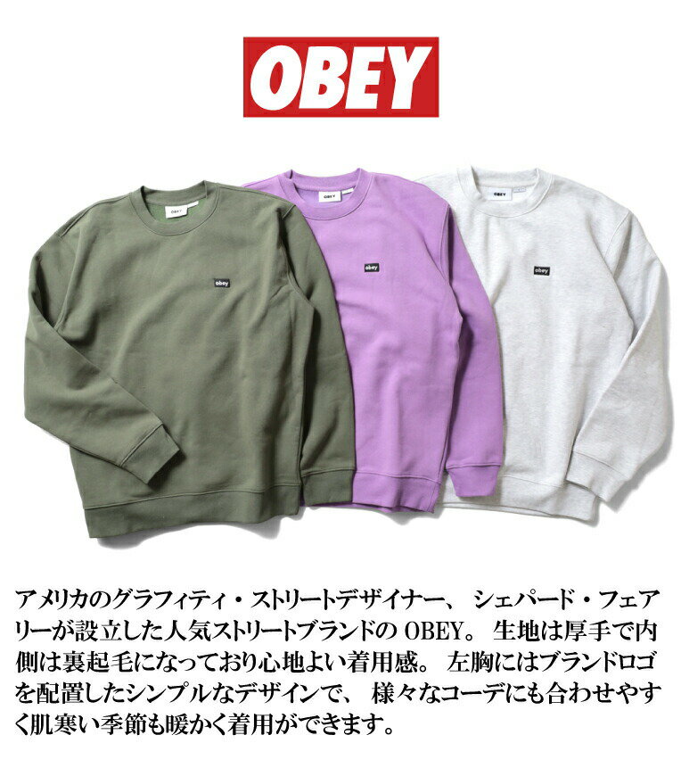『OBEY / オベイ』OBEY100 MINI BOX LOGO CREW / ミニボックス ロゴクルー -全3色- スウェット/裏起毛/厚手/ワンポイント/クルーネック/ストリート/カジュアル/長袖/シンプル [OBEY100]