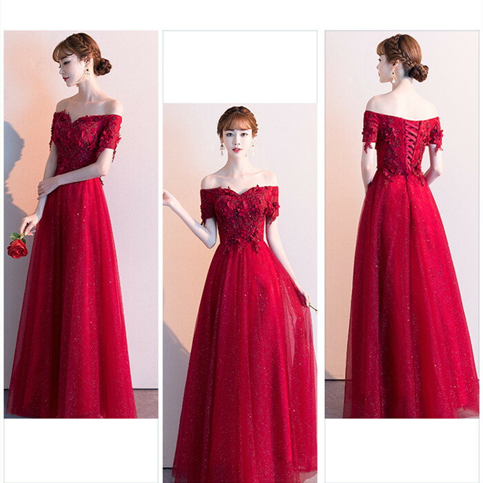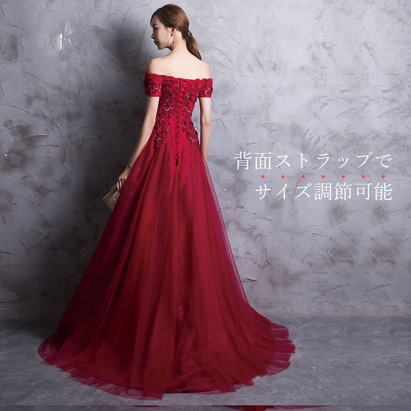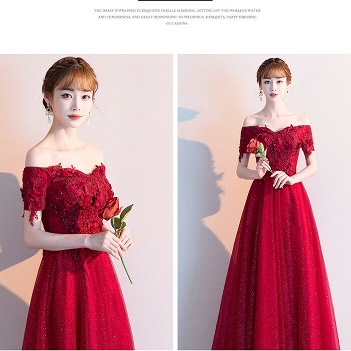 前撮りドレス ウェディングドレス【着後レビュー特典】オフショルダー Aラインドレス レッド 赤 お花の 3Dモチーフ 真っ赤 ハートカット カラードレス チュール インポート ワンピース ウェディング ドレス XS S XL XXL XXXL 大きい 小さい 披露宴 刺繍