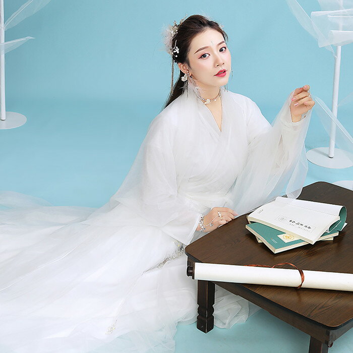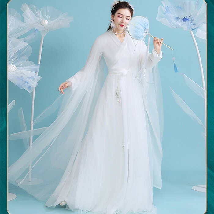 本格派!幻想的なホワイトの伝統模様のドレス 白 ホワイト 本場 直輸入 本格派 漢服 中国 伝統衣装 唐装 中華服 中華衣装 華流 チャイナドレス チャイナ風 コスプレ 宮廷風 本格的 ハロウィン オーダー 二次会 ドレス ワンピース 海外挙式 綺麗 伝統 伝統柄