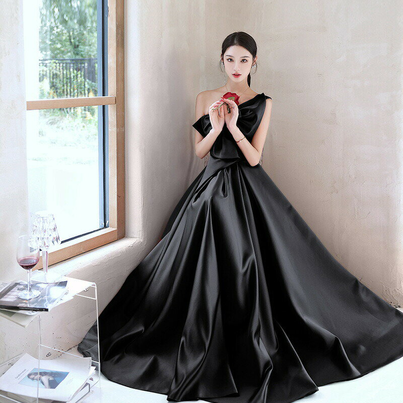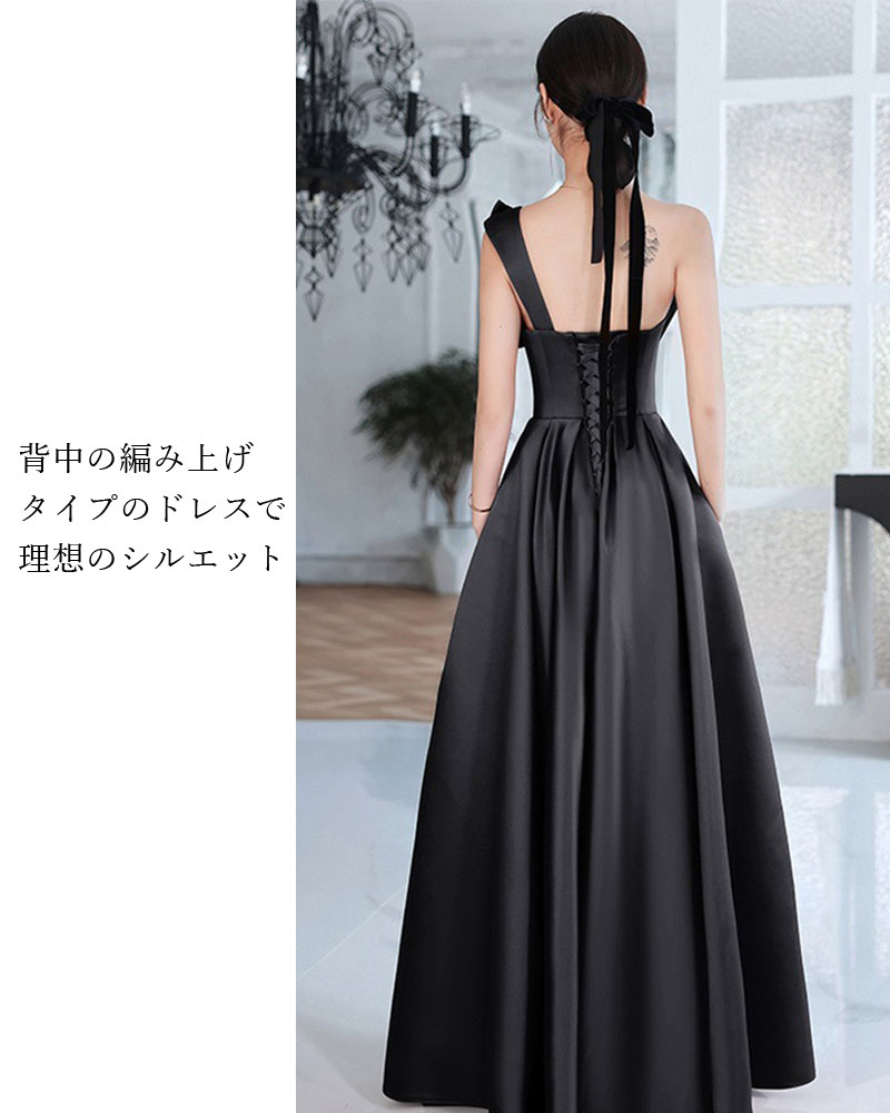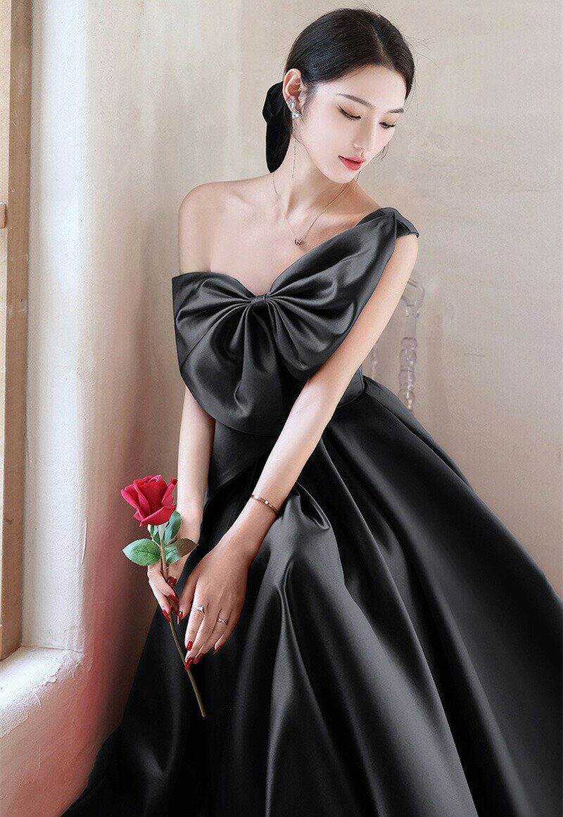 カラードレス ブラック 黒 ワイン ワンピース お色直し【着後レビュー特典】全2色 ビックリボンが大人かわいい アシンメトリーでデザイン性の高い 魅惑的なドレス レッド Aライン ミモレ丈 リボン ノースリーブ 結婚式 花嫁 ドレス インポート パーティ 発表会