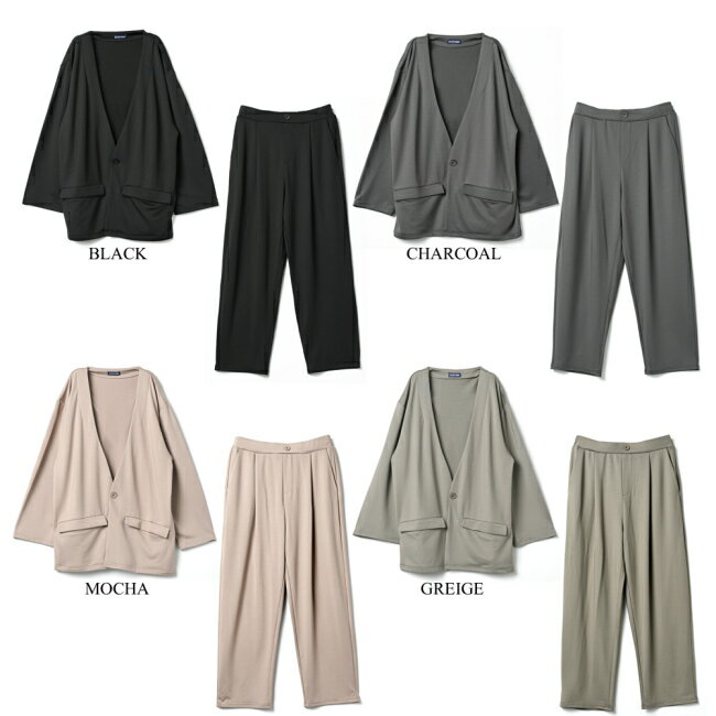 男女兼用 上下セット パジャマ スーツ セットアップ レディース ジャケット パンツ ルームウェア 大きいサイズ レギュラー 黒 生地 ビジネス 冬 秋冬 可愛い セットアップ ストレッチ ノーカラー 高撥水 ウィメンズ フロントボタン シンプル 最強配送