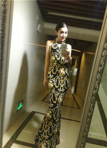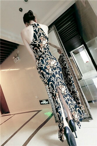 エレガントな王宮柄風デザイン欧米スタイル ストレッチロングドレス キャバドレス フォーマルドレス パーティードレス ストレッチドレス