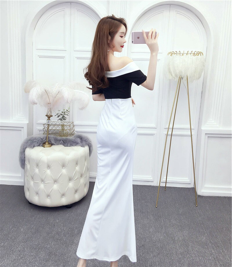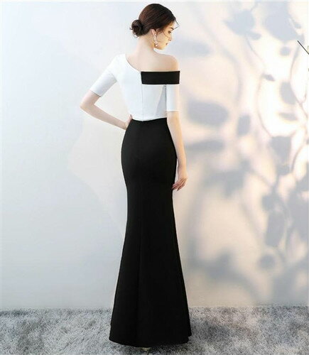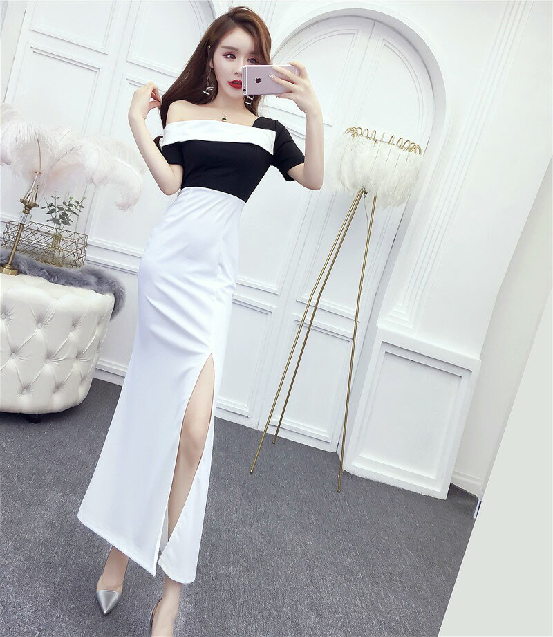 送料込み 送料無料 ロングドレス キャバドレス キャバワンピ ワンショルダーデザイン バイカラー配色sexyスリットロングドレス パーティードレス フォーマルドレス ストレッチロングドレス