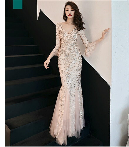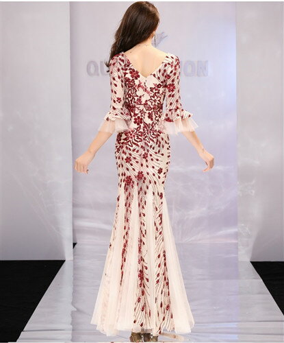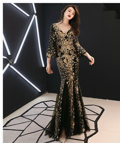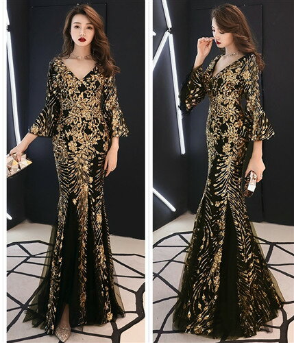 ロングドレス キャバドレス キャバワンピ 煌めくスパンコール装飾にエレガントなメッシュレース重ねストレッチロングドレス