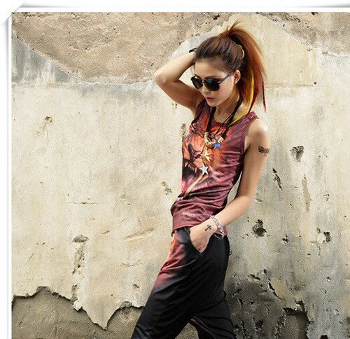 個性派ファッション 原宿系 ダンス衣装 DANCEファッション ステージ衣装 HIPHOP系 ストリート系 インパクトあり!トラプリントデザイン トップス タンクトップス DANCE衣装