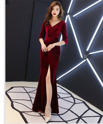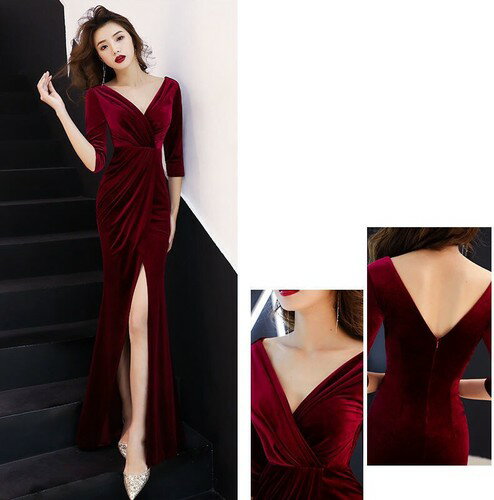 ロングドレス キャバドレス ワンピース パーティードレス 今季ベロア生地デザイン セクシースリットロングドレス