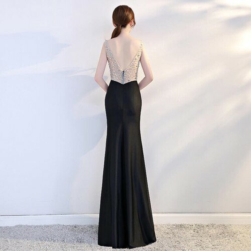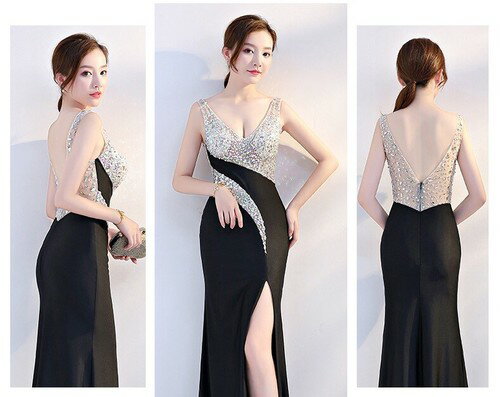 ロングドレス キャバドレス キャバワンピ 煌めくスパンコール装飾にセクシーな背中Vラインデザイン ストレッチロングドレス パーティードレス