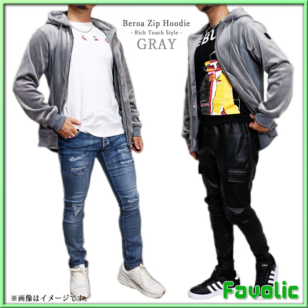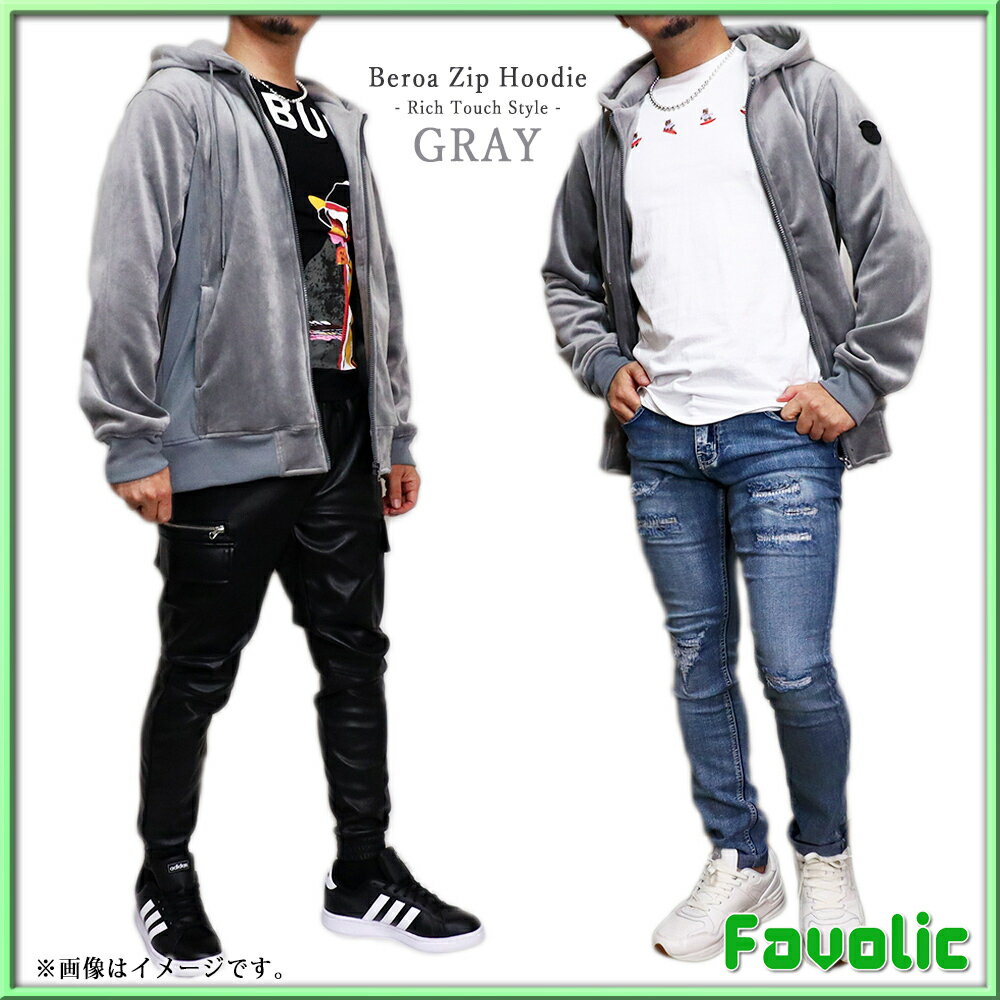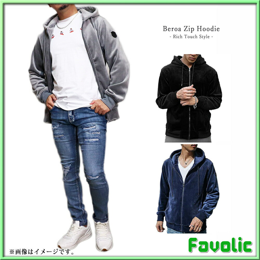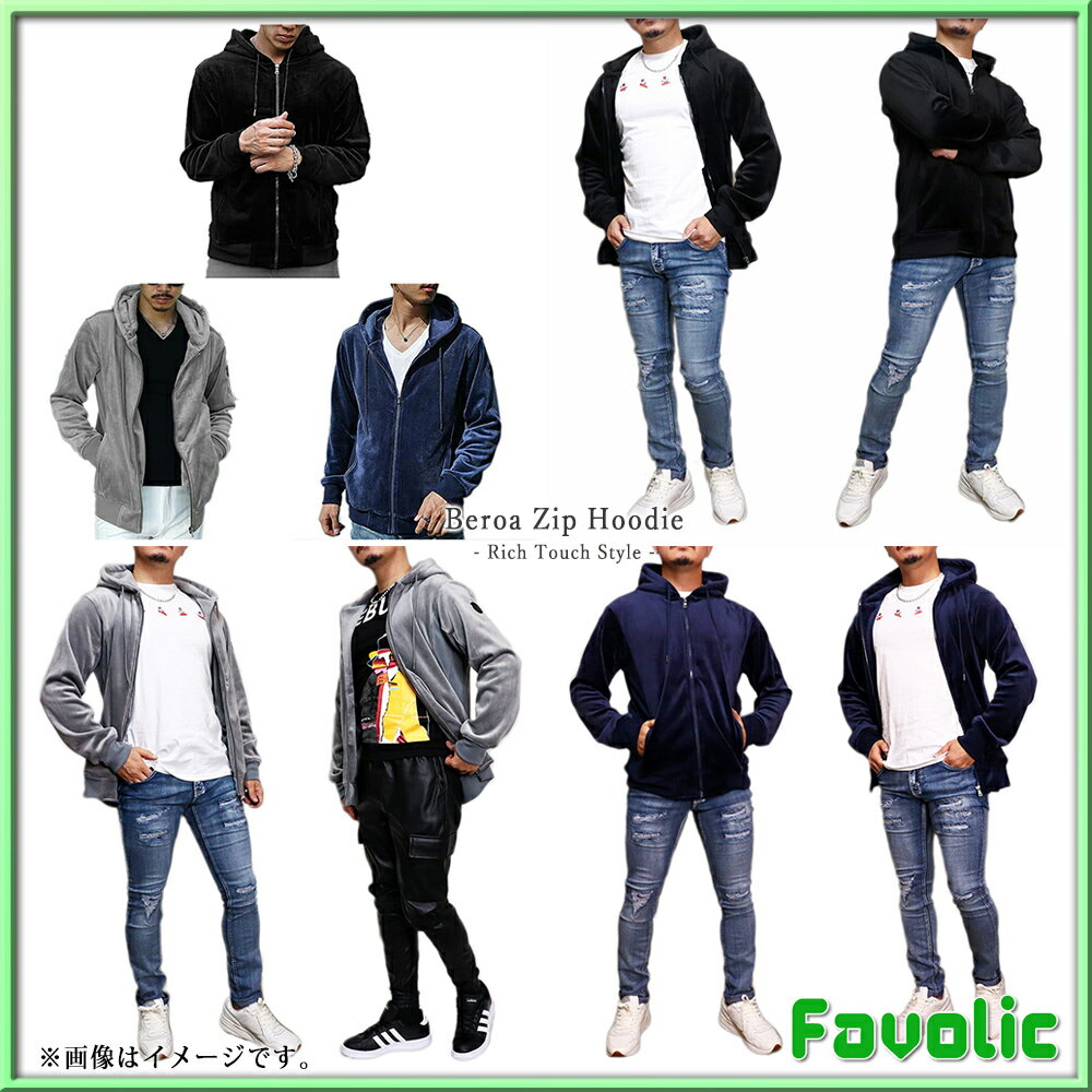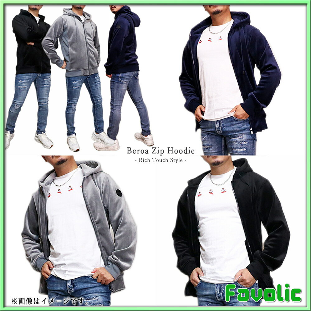 リッチタッチ ベロア ジップパーカー スタイリッシュ ネイビー ブラック グレー シンプル ラグジュアリー メンズ GT-LINE Favolic