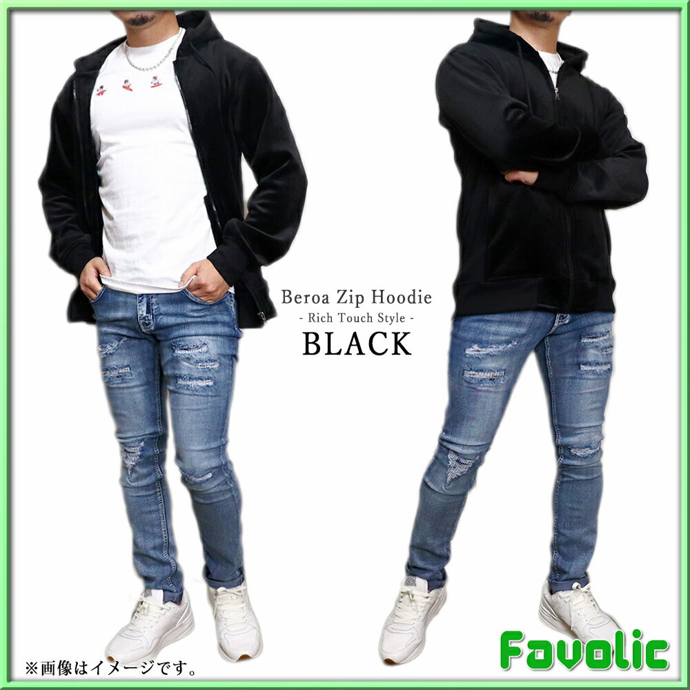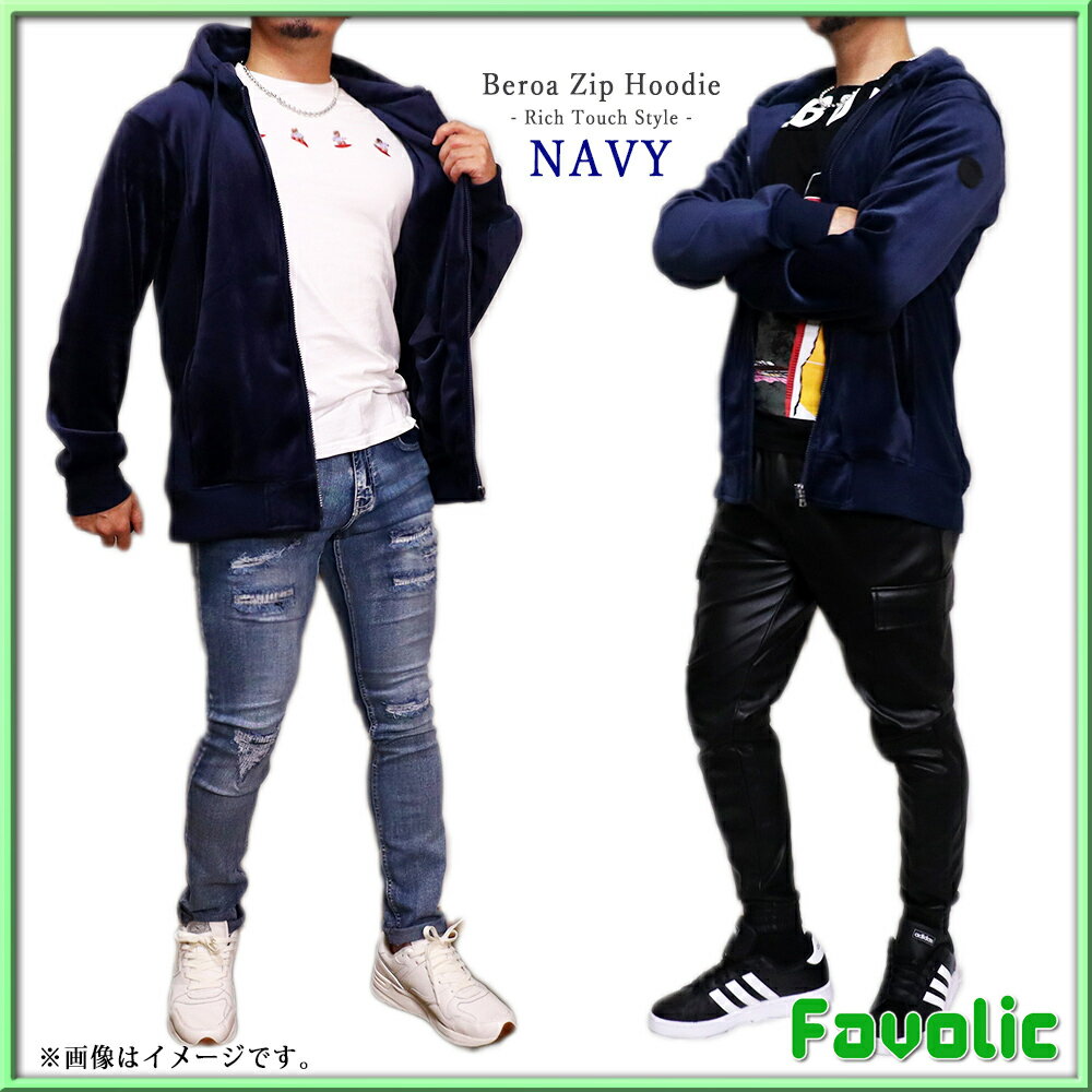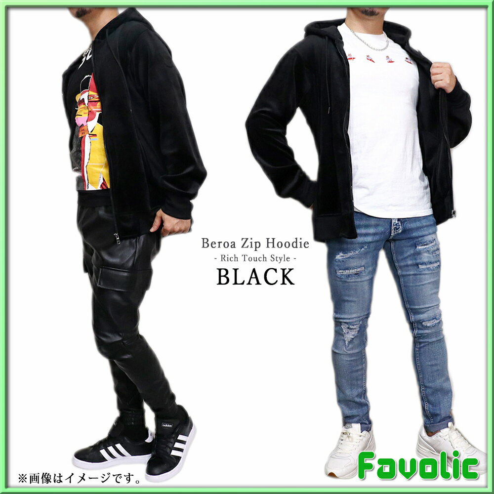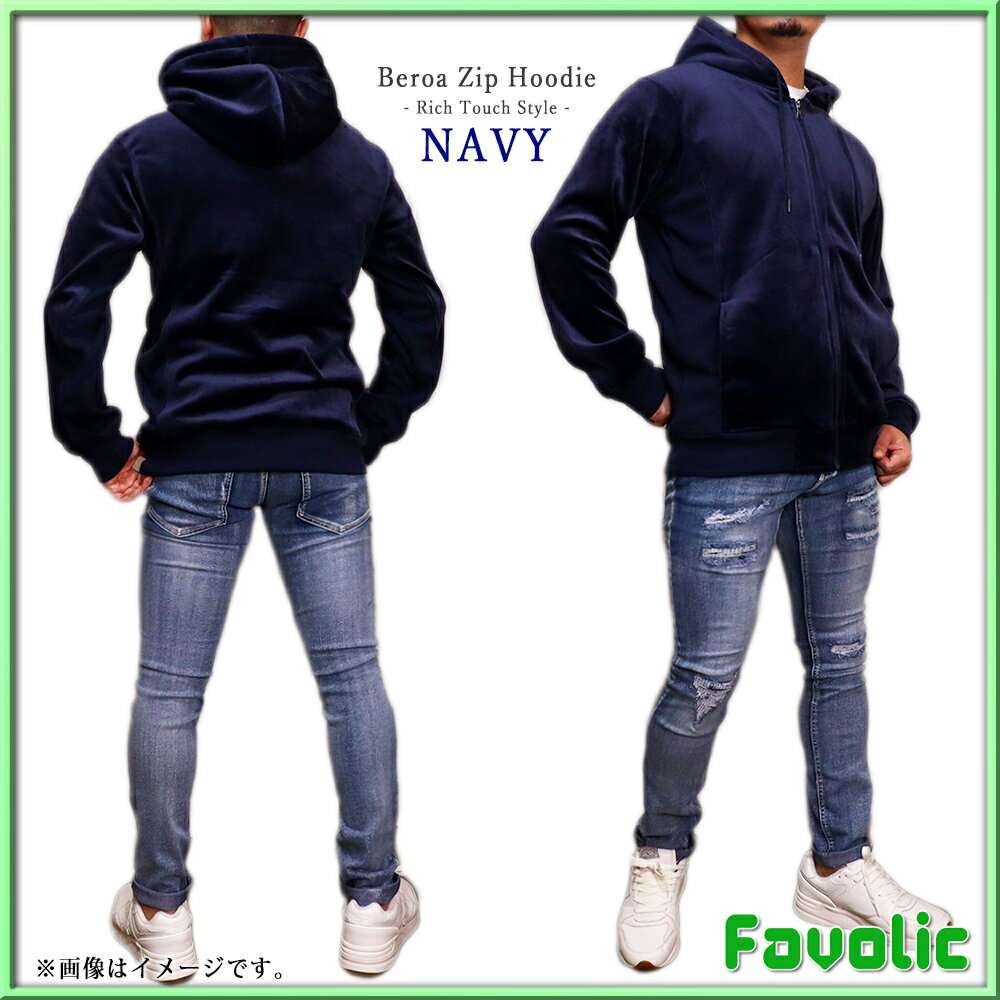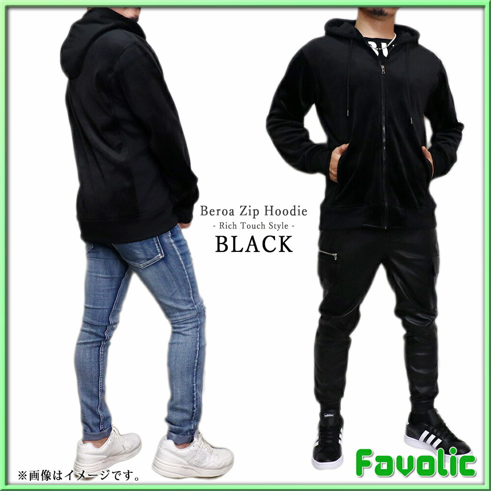 リッチタッチ ベロア ジップパーカー スタイリッシュ ネイビー ブラック グレー シンプル ラグジュアリー メンズ GT-LINE Favolic