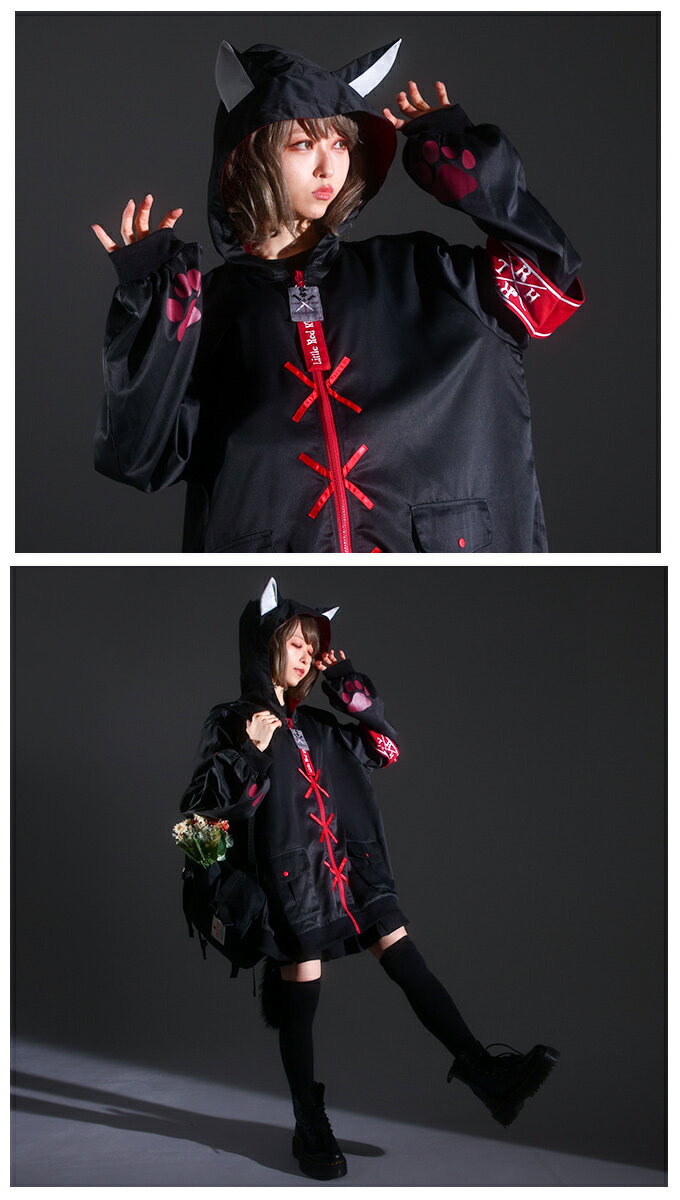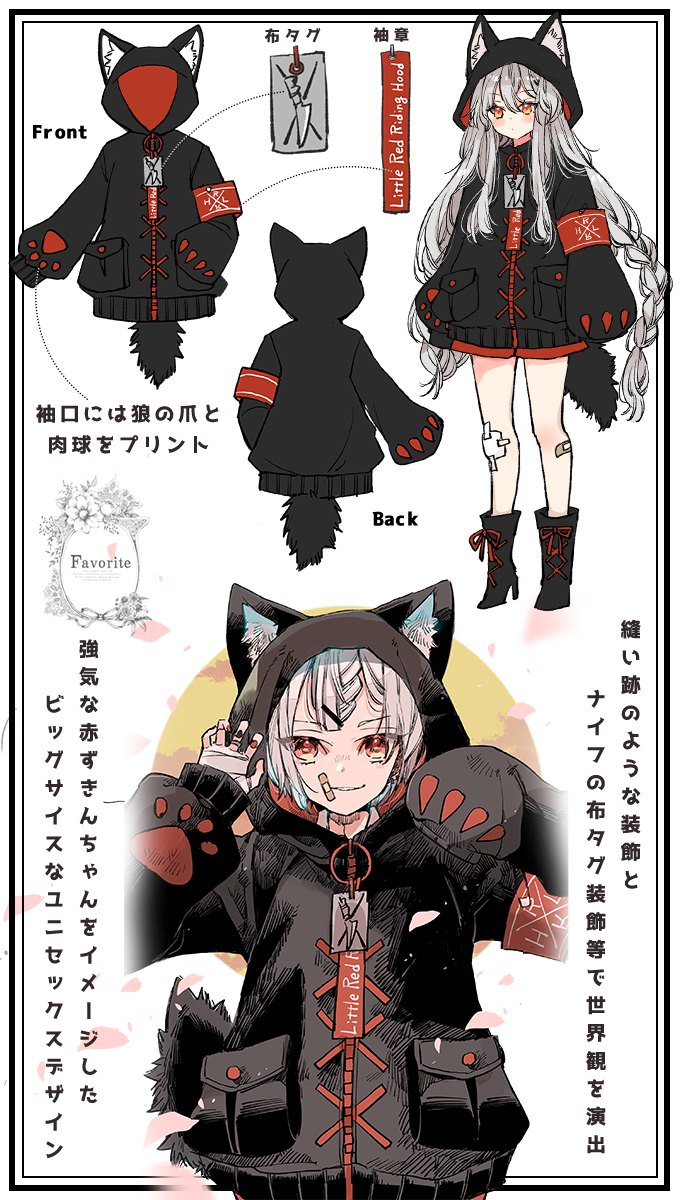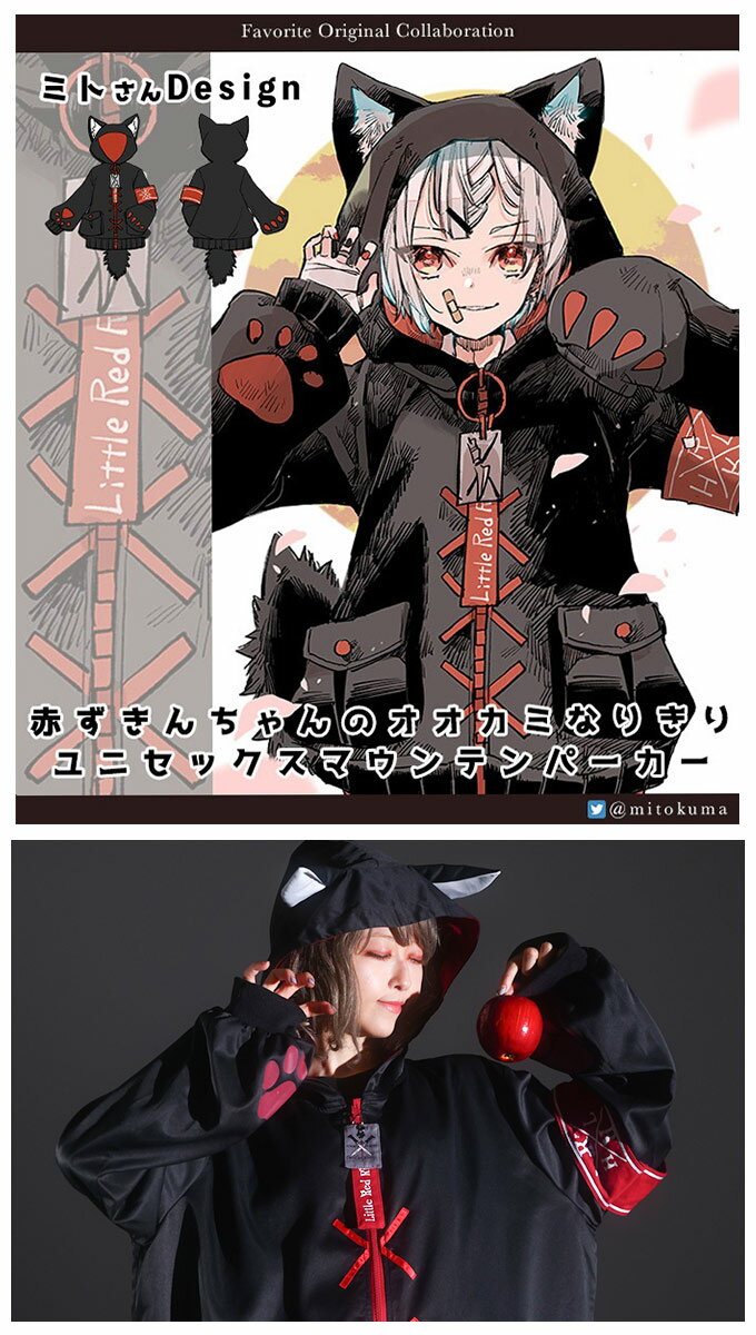 ◆50%off◆ 原宿系 サブカル系 地雷系 パーカー ユニセックス 赤ずきん オオカミ 狼 肉球 尻尾 耳 Favorite ミトさん コラボ 赤ずきんちゃんのオオカミなりきりユニセックスマウンテンパーカー