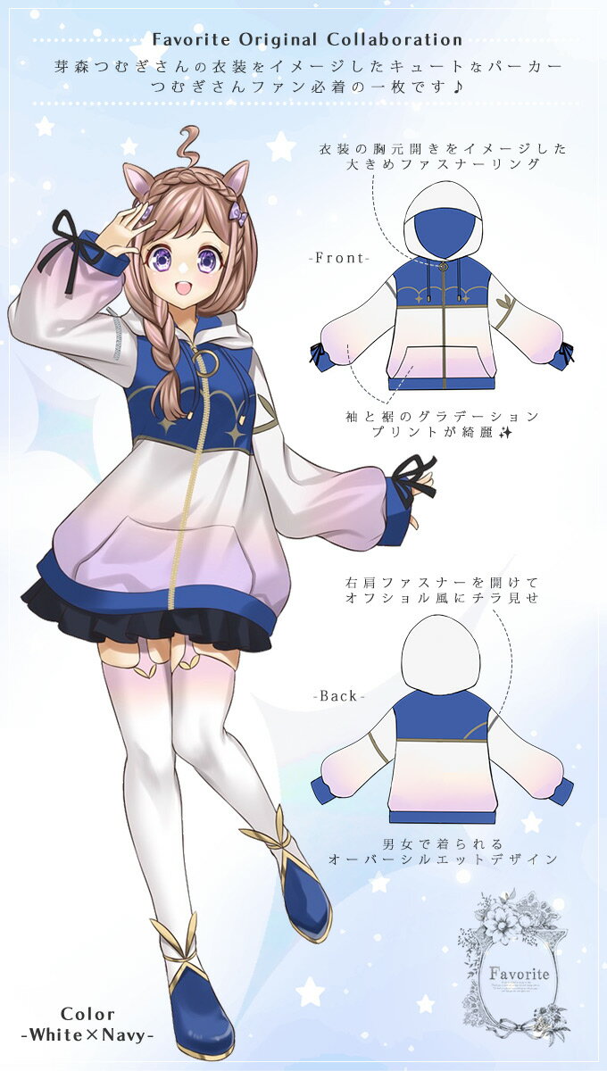 【最短即日出荷】ユニセックス 男女兼用 ビッグシルエット Favorite 芽森つむぎさん コラボ企画 つむぎモチーフほんわりパーカー