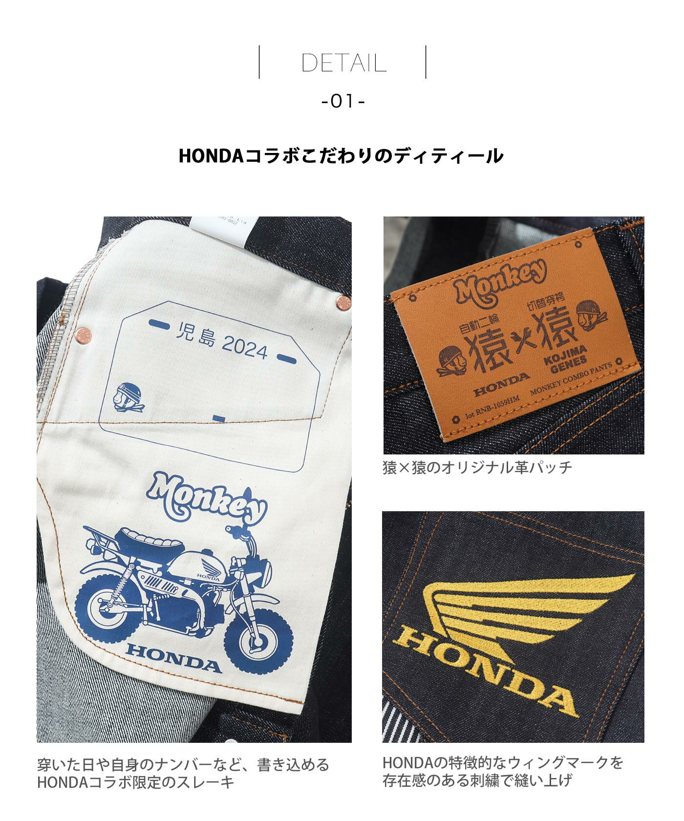 児島ジーンズ 公式通販 HONDA コラボ デニム モンキー コンボパンツ kojimagenes