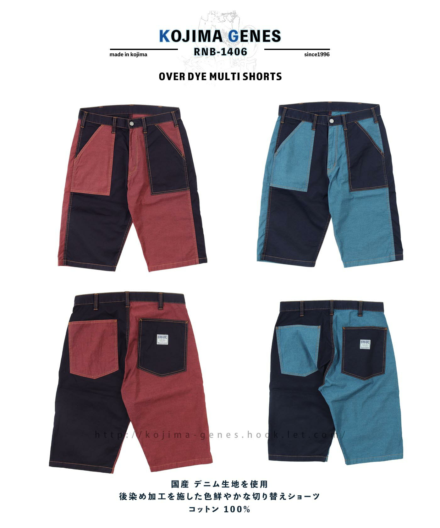児島ジーンズ 公式通販 オーバーダイ マルチショーツ kojimagenes