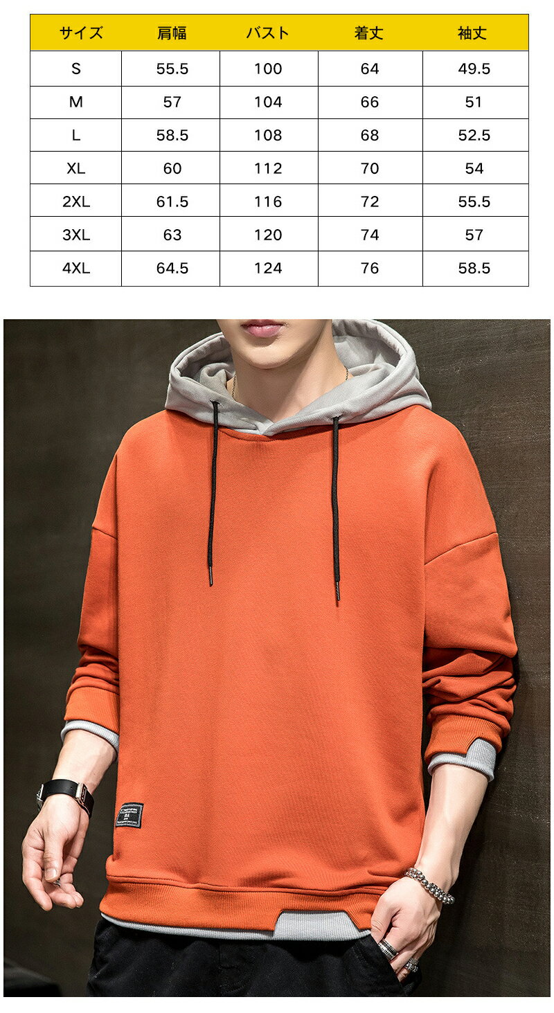 【P10倍×最大2000円OFF】プルオーバー パーカー メンズ レイヤード 青少年 重ね着 大きいサイズ おしゃれ 長袖 スウェットパーカー ビッグシルエット メンズトップス オシャレ フード カジュアル トレーナー 春 秋 ゆったり ファッション アメカジ 通学