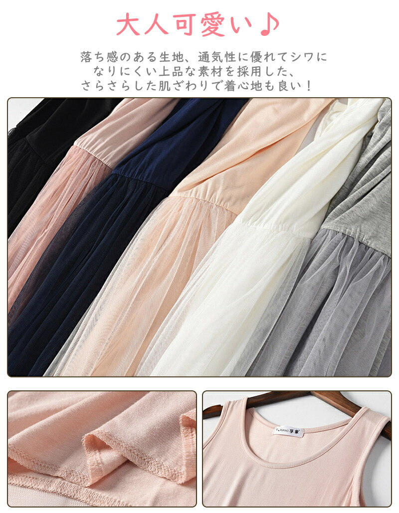 【着やせ効果】ペチコート キャミワンピース ロング レディース 夏 キャミソール キャミソール きれいめ 可愛い 柔らか チュールワンピ インナー スリップ ひざ下 カジュアル スカート レース マキシ丈 体型カバー シンプル ロングワンピ