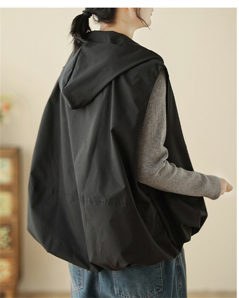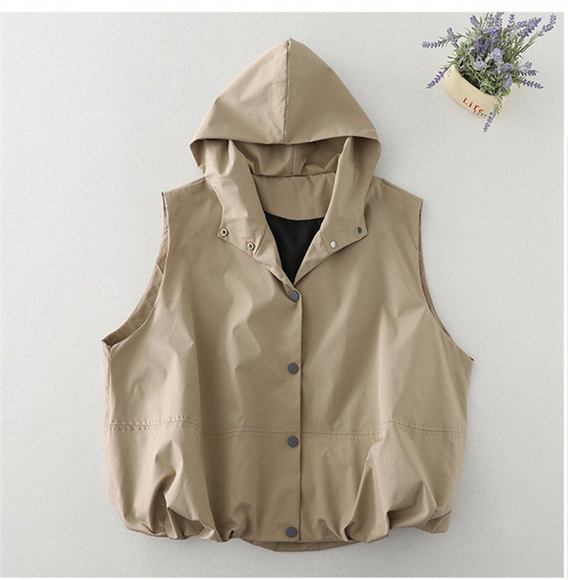 ベスト ジレ レディース パーカー フード付き アウター ジャケット ライトアウター ジレンチ パーカー スプリングコート 春 秋 レイヤード ゆったり Aライン 裾変形デザイン バルーン キャザー入り 大きいサイズ コート ショートコート 無地 カジュアル 散歩 20代 30代 40代