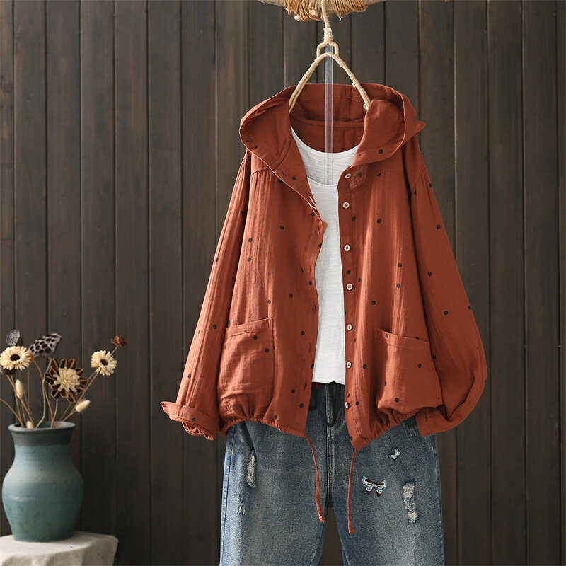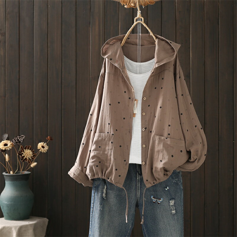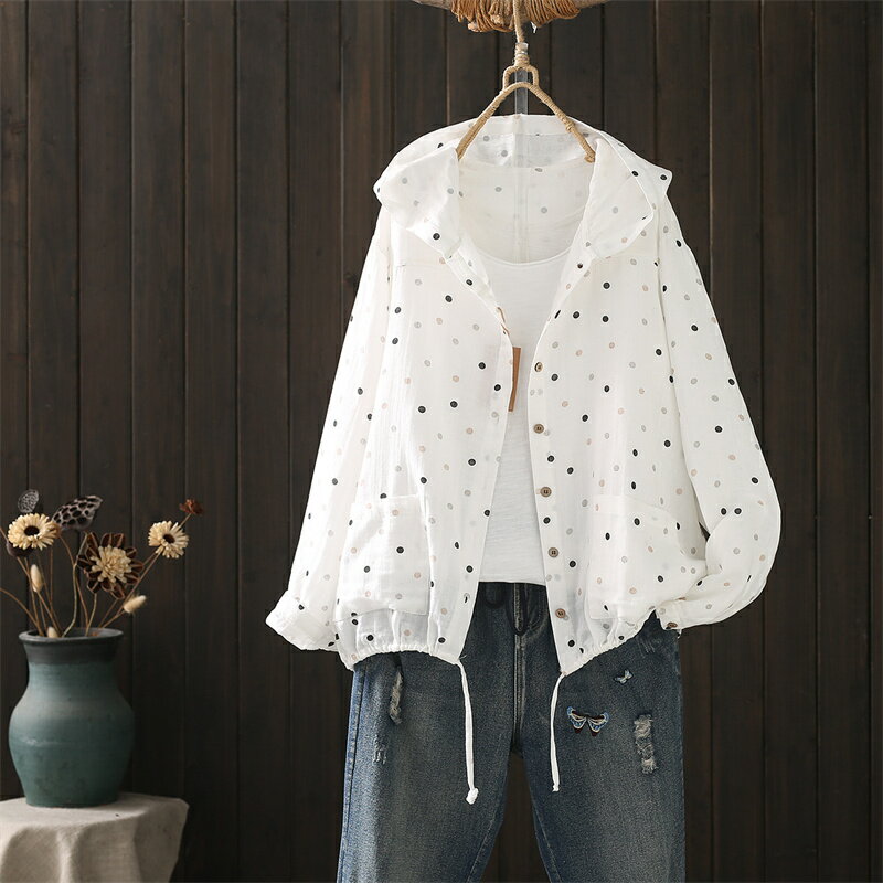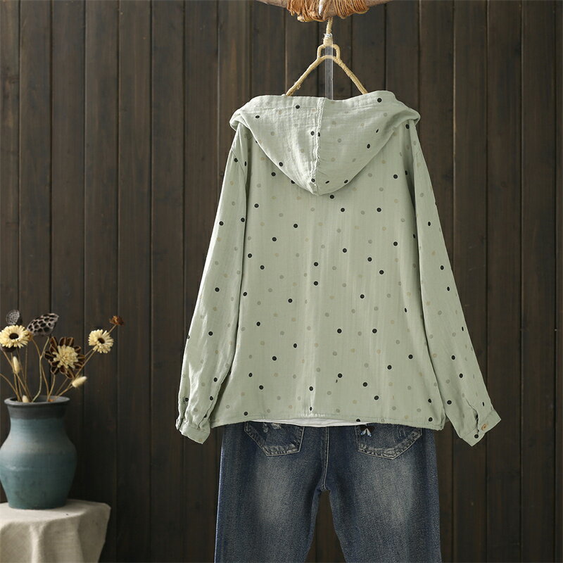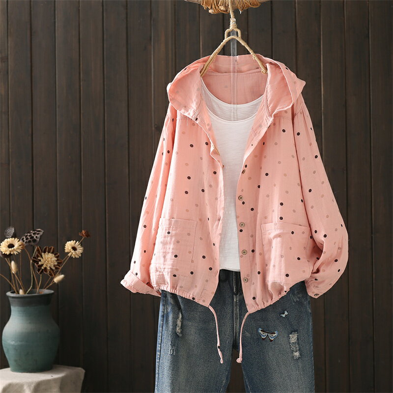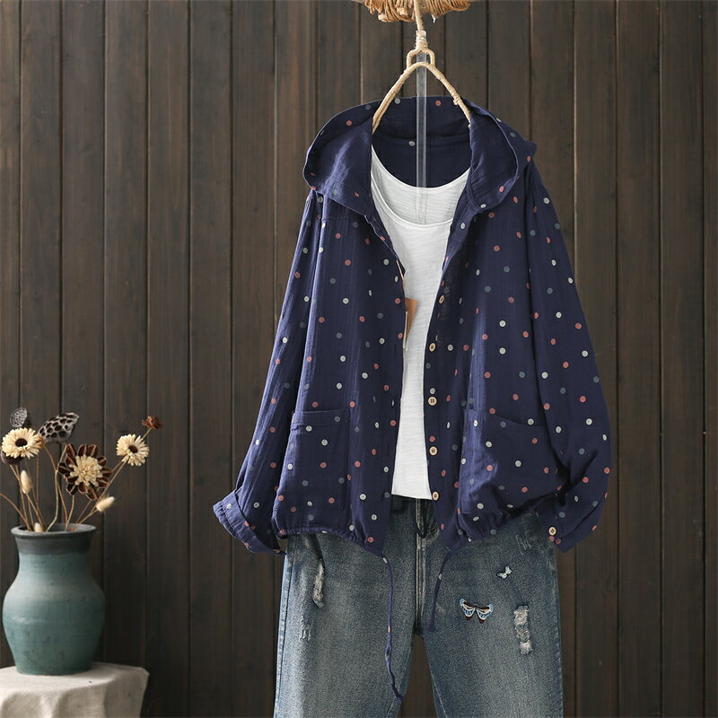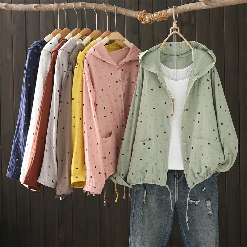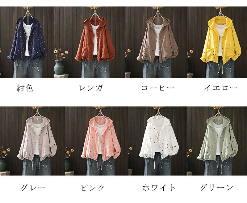 パーカー 春 アウター レディース 綿 ライトアウター 夏 長袖 シャツ トップス ブラウス 薄手 無地 夏 uvパーカー カーディガン ショート 長袖パーカー フード付き ドット柄 ジャケット 羽織り 通気性 羽織 冷房対応 通学 吸湿 速乾 春物 リラックス 20代 30代 40代 50代